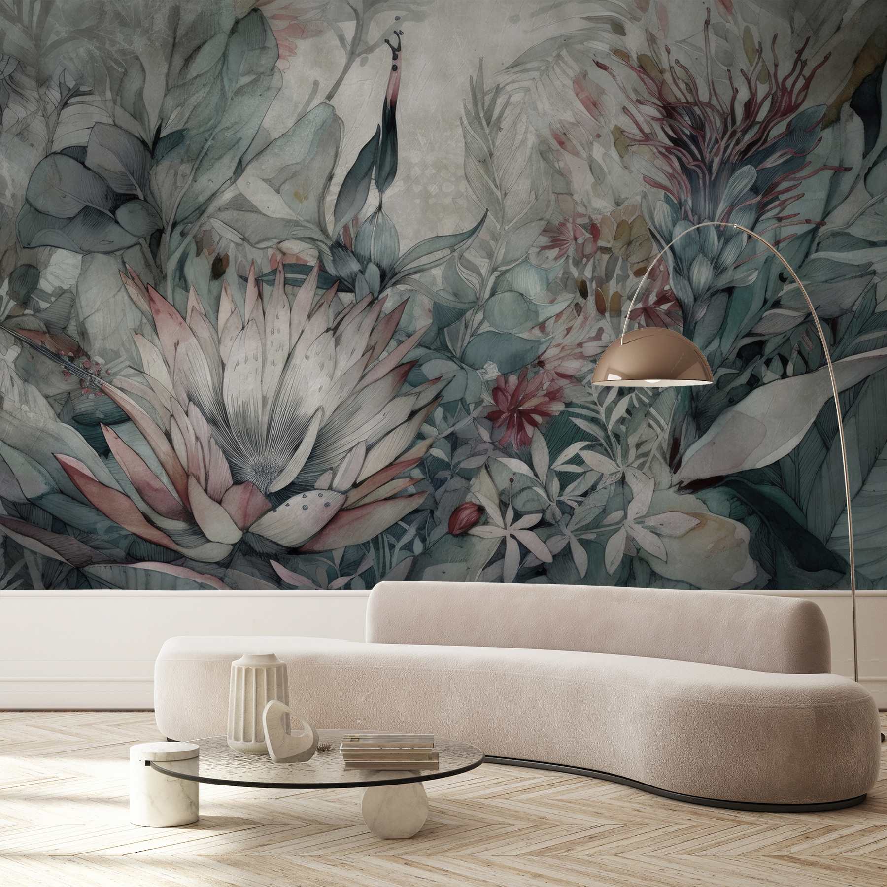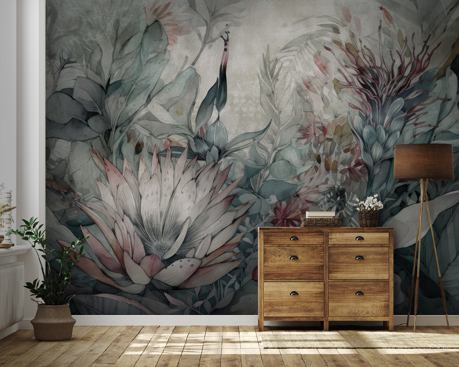 Tato nástěnná malba se hodí k boho-chic atmosféře nebo dokonce k modernímu minimalistickému stylu a dodá mu ten správný nádech umění inspirovaného přírodou. Vzpomeňte si na svou ranní kávu – a teď si představte, že ji pijete obklopeni tímto klidným, krásným ruměncem botanické blaženosti. Váš pokoj bude působit jako uklidňující únik, místo, kde si můžete odpočinout a nechat svou mysl bloudit. Navíc vám přátelé budou určitě trochu závidět.