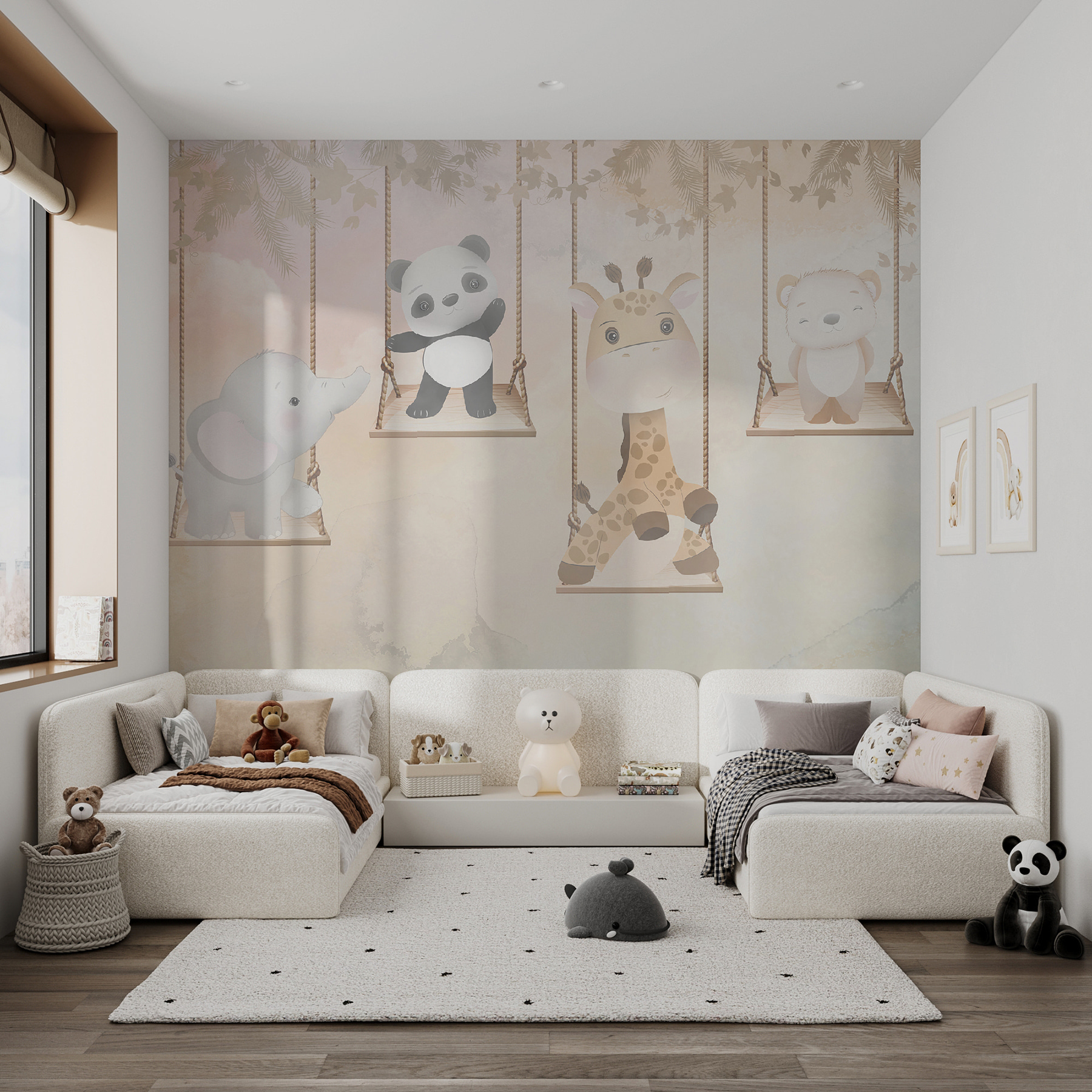 Díky jemným pastelovým barvám a zasněnému pozadí působí jako výjev přímo z pohádkové knihy. Představte si, jakou radost bude mít vaše dítě, až každý den vstoupí do tohoto kouzelného prostoru – možná si dokonce vysní dobrodružství s těmito okouzlujícími postavičkami! Navíc není určena jen pro děti – toto veselé umělecké dílo by si zamiloval každý milovník zvířat. Je to sladký únik z každodenního shonu, který nabízí hravý nádech a pocit úžasu při každém pohledu na něj.