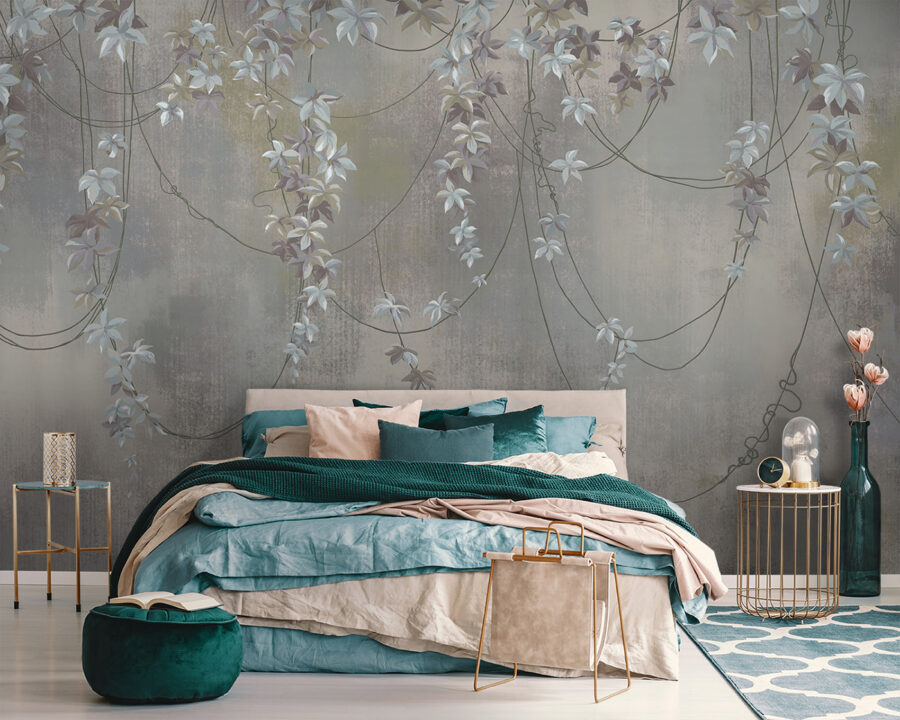 Představte si, že vejdete do místnosti a přivítá vás tato nástěnná malba – “Něžné liány a jemné květiny se proplétají.” Je to jako vstoupit do tajné zahrady. Způsob, jakým se zdá, že se vinná réva jemně kaskádovitě svažuje po stěně a je propletena jemnými květy, působí tak uvolněně. Ideální do ložnice nebo útulného čtecího koutku, působí téměř magicky. Možná se přistihnete, že při každém pohledu na něj sníte o slunných odpoledních a bezstarostných zahradách. Je jemná, ale tak okouzlující, tak trochu jako šepot jara po celý rok. Prostě nádhera.