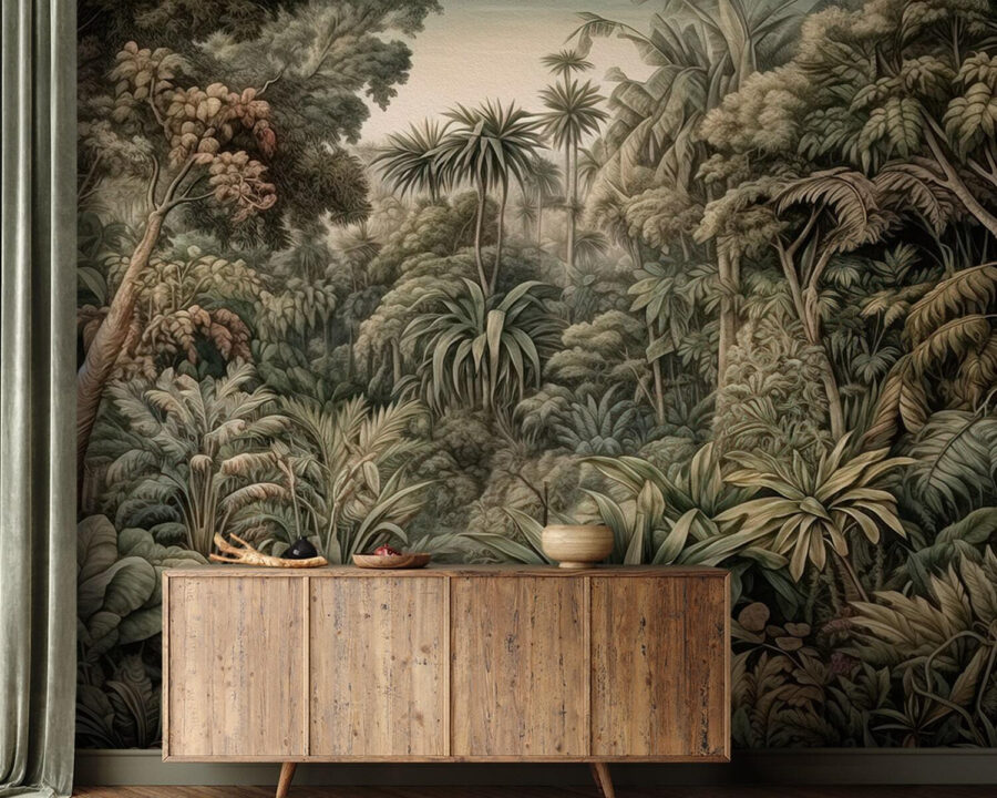 Snili jste někdy o tom, že proměníte pokoj ve svěží tropický ráj? Tato nástěnná malba “Hustý deštný prales” vás dostane! Je to jako vstoupit do džungle přímo z vašeho obývacího pokoje – docela cool, co? Různé odstíny zeleně a složité listí vás vtáhnou dovnitř, takže si budete připadat jako v exotickém deštném pralese, aniž byste potřebovali pas. Představte si, že popíjíte ranní kávu obklopeni všemi těmi živými rostlinami – je to jako každodenní mini dovolená. Ideální pro každého, kdo touží po trochu více přírody ve svém prostoru; je to jako mít své vlastní skryté útočiště v džungli! 🌿🌴🏡
