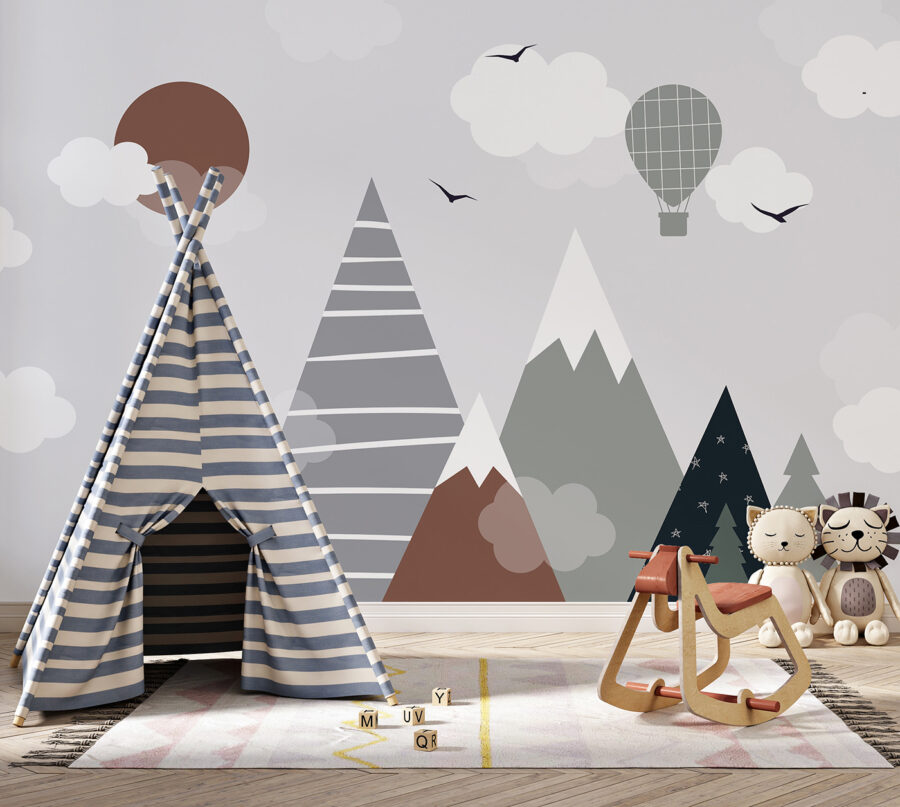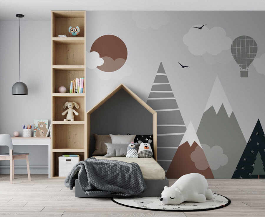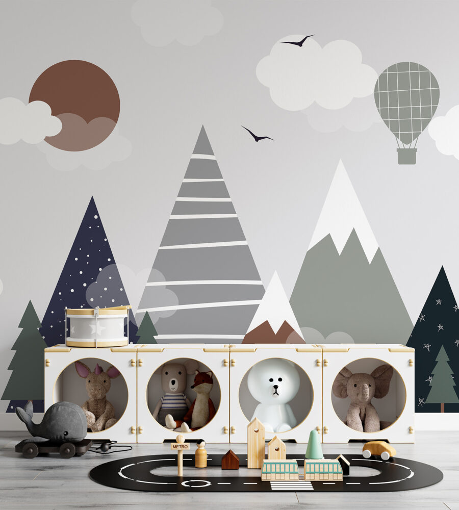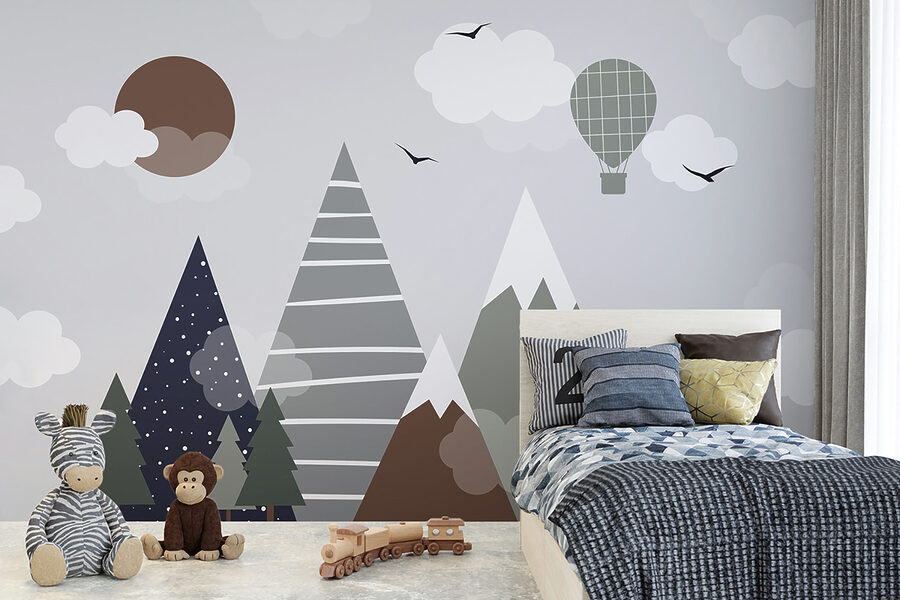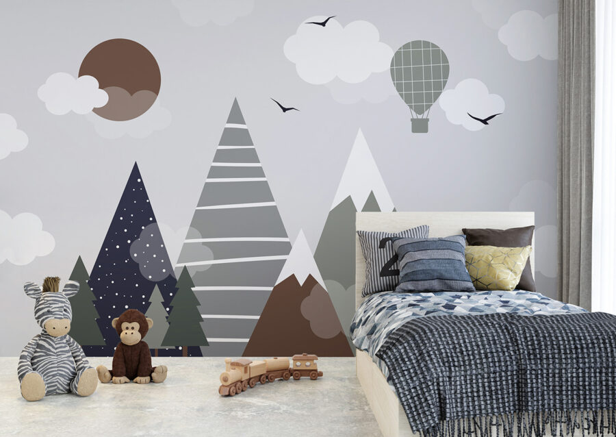 Ať už jde o čas vyprávění nebo hraní, děti budou mít pocit, že vstoupily do snového lesa. Umělecká směs vrcholků, borovic a obláčků podnítí jejich kreativitu a přenese je do vzdálených krajů. Skvěle se hodí pro miminka, batolata i další děti. Komu by se navíc nelíbilo, kdyby se mu na zdi vznášel horkovzdušný balón? Ideální do dětských pokojů nebo jakéhokoli prostoru, který potřebuje další nádech zázraku.