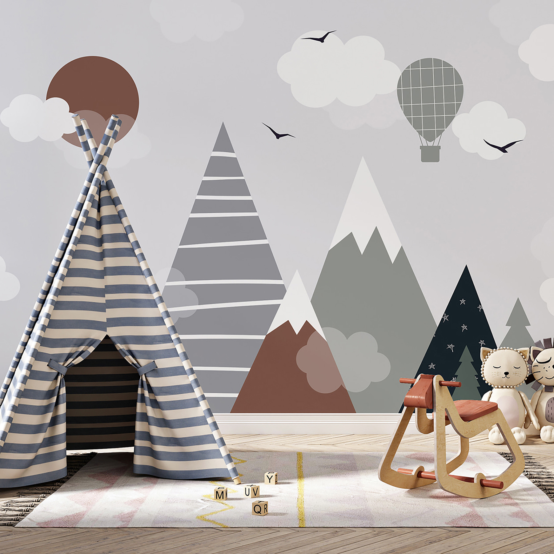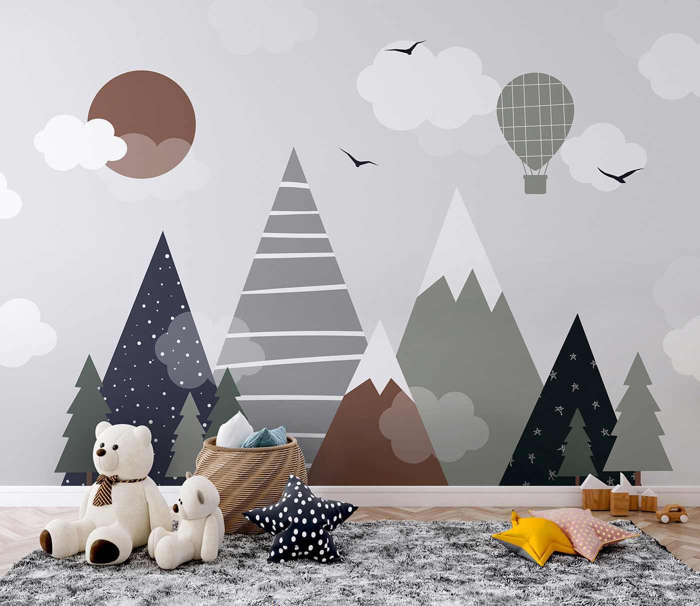 Ať už jde o čas vyprávění nebo hraní, děti budou mít pocit, že vstoupily do snového lesa. Umělecká směs vrcholků, borovic a obláčků podnítí jejich kreativitu a přenese je do vzdálených krajů. Skvěle se hodí pro miminka, batolata i další děti. Komu by se navíc nelíbilo, kdyby se mu na zdi vznášel horkovzdušný balón? Ideální do dětských pokojů nebo jakéhokoli prostoru, který potřebuje další nádech zázraku.