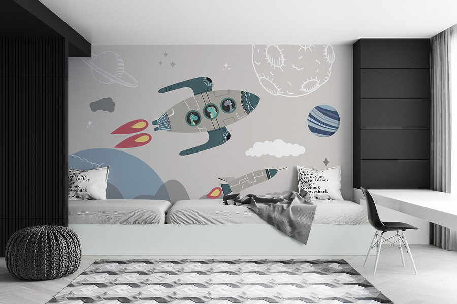 Představte si to: dinosauři letící vesmírem v raketových lodích! Je to čiré kouzlo na zdi! Tato nástěnná malba je ideální do každého dětského pokoje a podněcuje nekonečná dobrodružství a divokou představivost. Představte si příběhy před spaním o astronautech T-Rexech a přistání dinosaurů na Měsíci. Sledovat, jak se vašemu děťátku rozzáří oči pokaždé, když ji uvidí – to je k nezaplacení. Barvy jsou jemné a poutavé a vytvářejí útulnou a zároveň vzrušující atmosféru. Je to rozmarná směs prehistorického kouzla a vesmírné pohody. Ideální pro malé snílky a budoucí průzkumníky. Před spaním s raketovým pohonem? Ano, prosím!