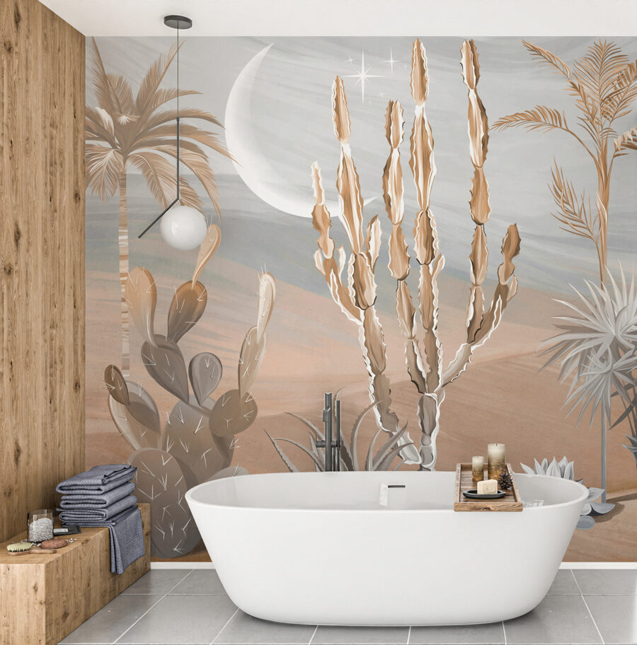 A upřímně, kdo by ve svém životě nepotřeboval trochu pouštního zenu? Ať už jste fanoušci kaktusů, nebo jen chcete mít nádech tropů, tahle nástěnná malba to dokáže. Takže směle do toho, proměňte svůj prostor s trochou bezstarostných pouštních vibrací! 🌵🕌