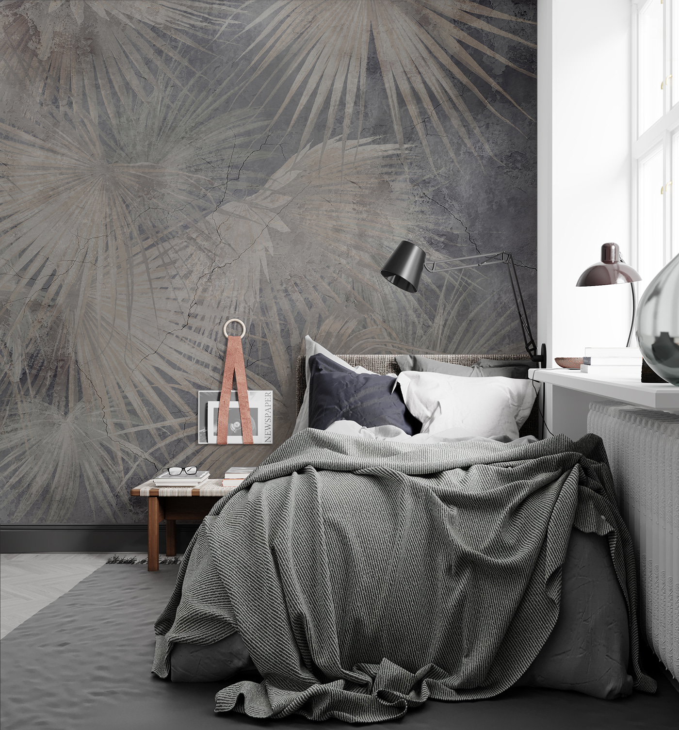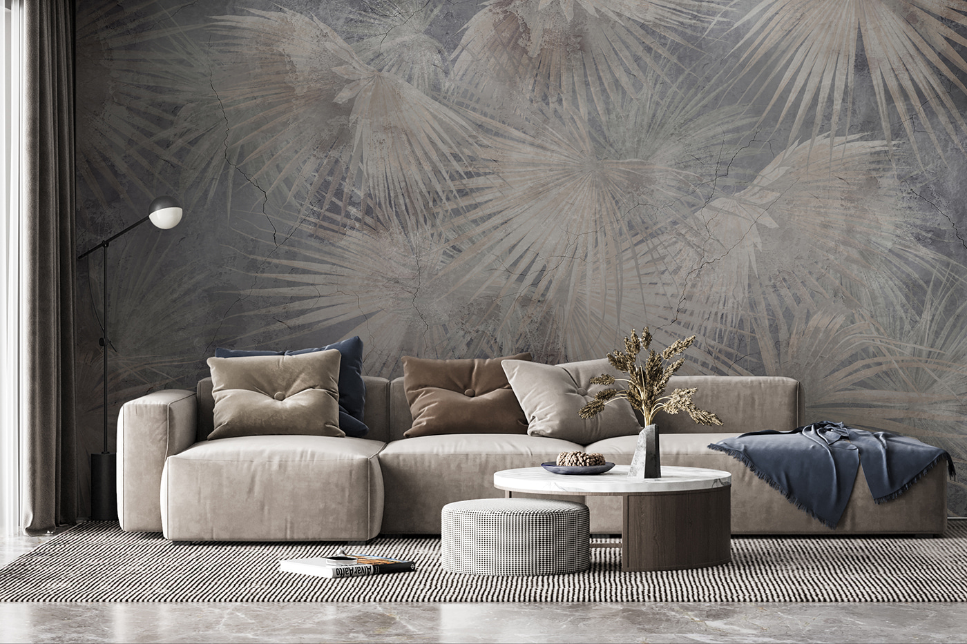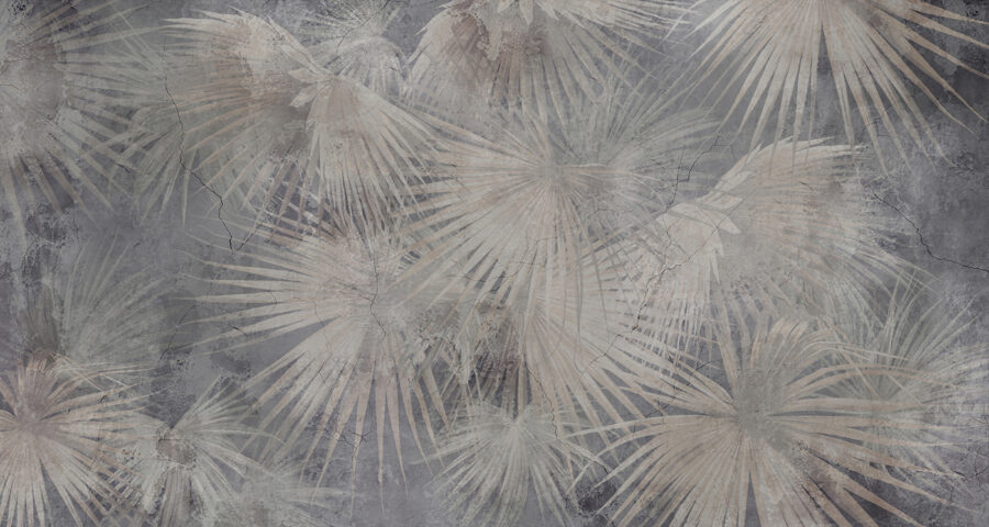Představte si, že vejdete do svého obývacího pokoje a budete mít pocit, že jste právě vstoupili do umělecké venkovní galerie s palmovými listy jemně navrstvenými na krásně popraskaném pozadí. Je to víc než jen tapeta – jako byste si přinesli kus moderní přírody přímo k sobě domů.