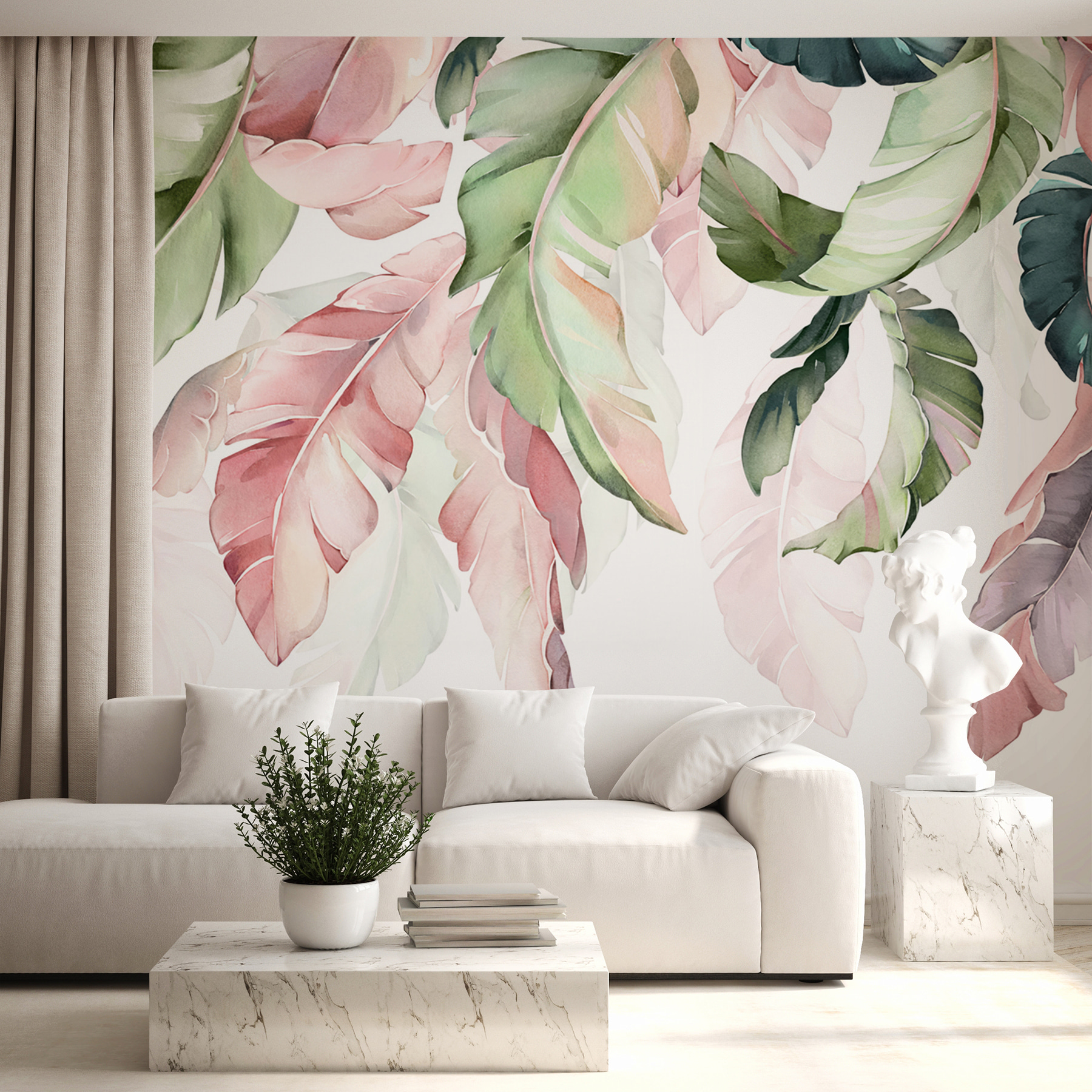 S touto úžasnou nástěnnou malbou s barevnými listy tvořícími půvabný baldachýn proměníte každou místnost v listnatý únik. Představte si, že vstoupíte do svého prostoru a budete mít pocit, že jste se přenesli do klidného lesa. Jemné odstíny zelené, růžové a měkké vzory nejen zdobí stěnu – vybízejí k hravé a zároveň uklidňující atmosféře, která je ideální pro útulné večery nebo veselá rána. Ať už se jedná o ústřední prvek obývacího pokoje nebo pozadí pro domácí rozhovory, tato nástěnná malba dodá přírodě nádech elegance, aniž byste potřebovali zahradu. Milovníci přírody tuto atmosféru rozhodně ocení, nemluvě o tom, že poslouží jako fantastický začátek konverzace. Není potřeba žádný zelený palec!