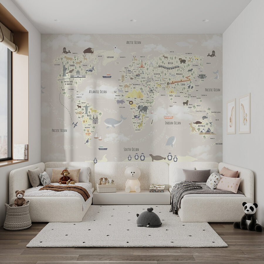 S touto okouzlující fototapetou světa proměníte každou místnost v mini dobrodružnou zónu. Není to jen tak ledajaká mapa – je to barevná tapiserie zemí, hravých zvířat a rozmarných detailů, které mohou vzbudit zvědavost dětí i dospělých. Představte si, jak se malí průzkumníci chichotají, když ukazují na svá oblíbená místa nebo zahlédnou plavat drzou velrybu. Tato nástěnná malba je víc než jen dekorace; je to podnět ke konverzaci, učební pomůcka a upřímně řečeno i útulné místo pro snění. Perfektně se hodí do dětského pokoje nebo do hravého prostoru a vyzývá všechny, aby se vydali na globální cestu, aniž by museli opustit domov. Zdobení nemusí být vážné, že? Stačí ji zavěsit a sledovat, jak se rozvíjí kouzlo!