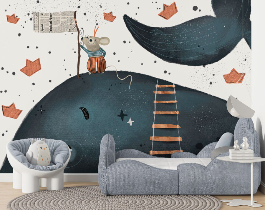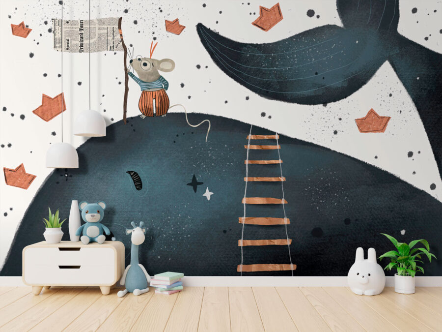 S touto nádhernou fototapetou proměníte každý dětský pokoj v rozmarné dobrodružství. Představte si to: veselá myška statečně šplhá po žebříku, mává vlajkou na přátelské velrybě, obklopená okouzlujícími papírovými lodičkami. Je to vizuální příběh, který jen čeká na to, až rozproudí malou fantazii.