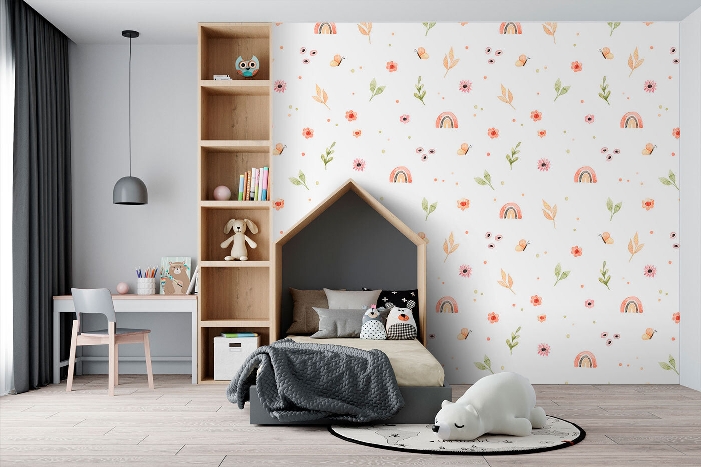 Proměňte každou místnost v hravý úkryt s touto rozmarnou přírodní fototapetou s veselými duhami a jemnými květinami. Představte si, že vstoupíte dovnitř – je to jako jemný vánek čerstvého jarního vzduchu! Děti budou rády pozorovat poletující motýly, zatímco rodiče se možná přistihnou, jak sní o slunečném pikniku. Tato nástěnná malba není jen dekorací, ale podněcuje představivost a radost. Skvěle se hodí do pokojíčků nejmenších a přináší teplo a nádech kouzel. Kdo by se nechtěl každý den probouzet s duhou? Je to nádherná barevná skvrna, která rozzáří každý prostor!