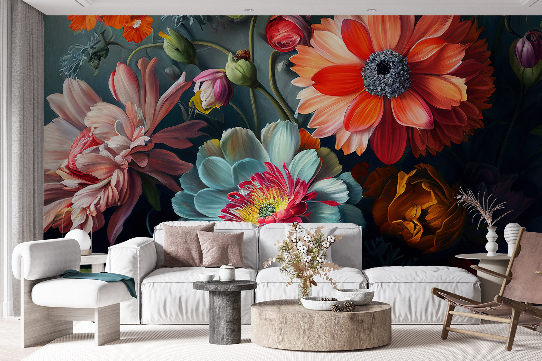 Představte si, že vejdete do místnosti, kde na vás vyskočí zářivé květy a prakticky si říkají o pozornost. Tato nástěnná malba s hravou směsicí barev a textur promění každý prostor v živé zahradní útočiště. Představte si útulné zákoutí plné slunečního světla, kde vás tato ohromující expozice vtáhne dovnitř, rozproudí radost a trochu rozmaru. Přátelé se vás budou ptát, jestli máte tajnou zahradu! Je ideální pro oživení nudné stěny nebo dodání šmrncu elegantnímu bytu. Proč nepřijmout tyto květinové vibrace a nenechat své stěny rozkvést?