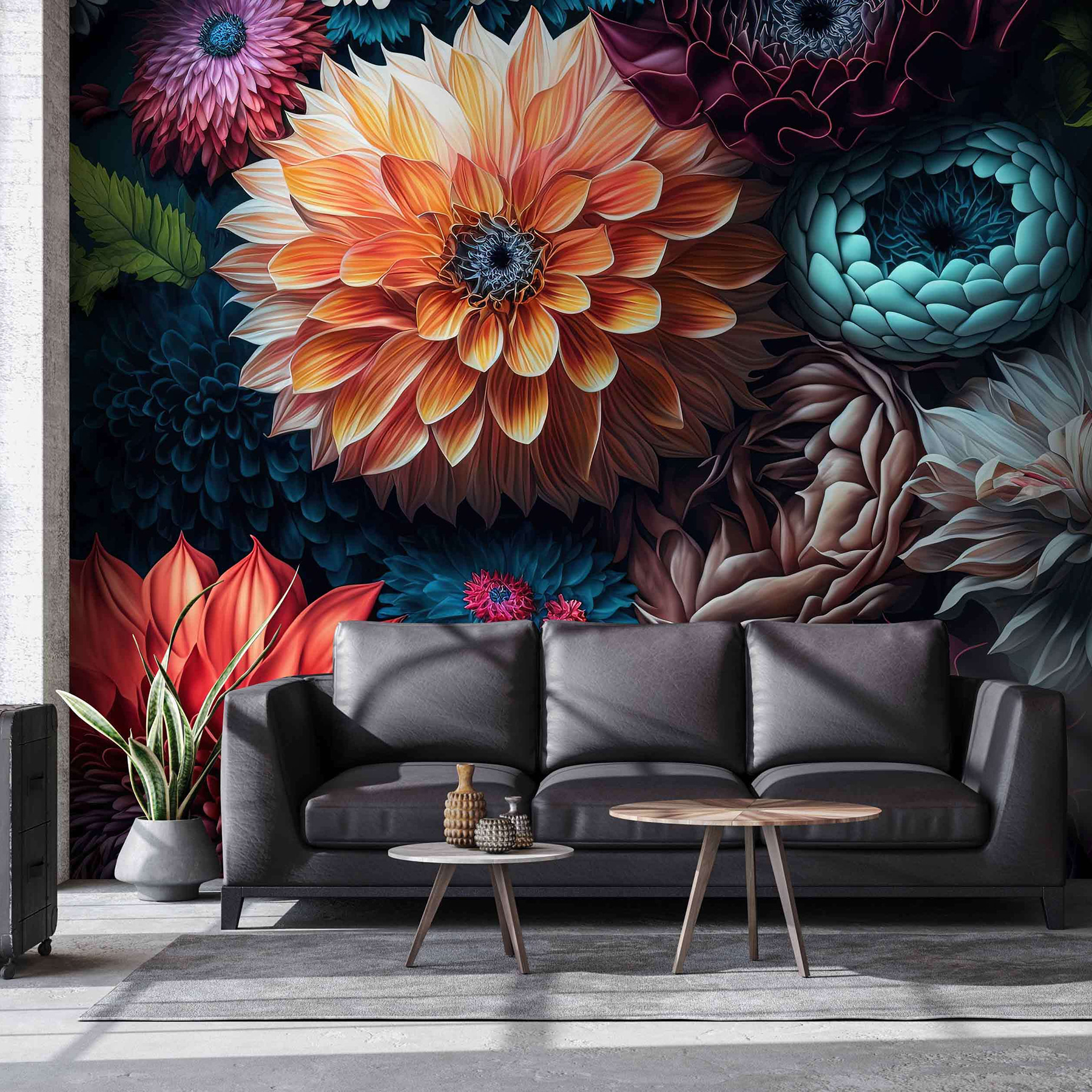 Proměňte nudnou zeď v úchvatnou zahradu s nástěnnou malbou “Barevné květiny kvetoucí elegancí”. Představte si, že vstoupíte do zářivé květinové říše přímo ve svém obývacím pokoji. Tyto svěží květy hýřící barvami dokáží i v těch nejpošmournějších dnech navodit pocit jara. Je to jako zavěsit kus přírody do interiéru – není třeba zalévat!