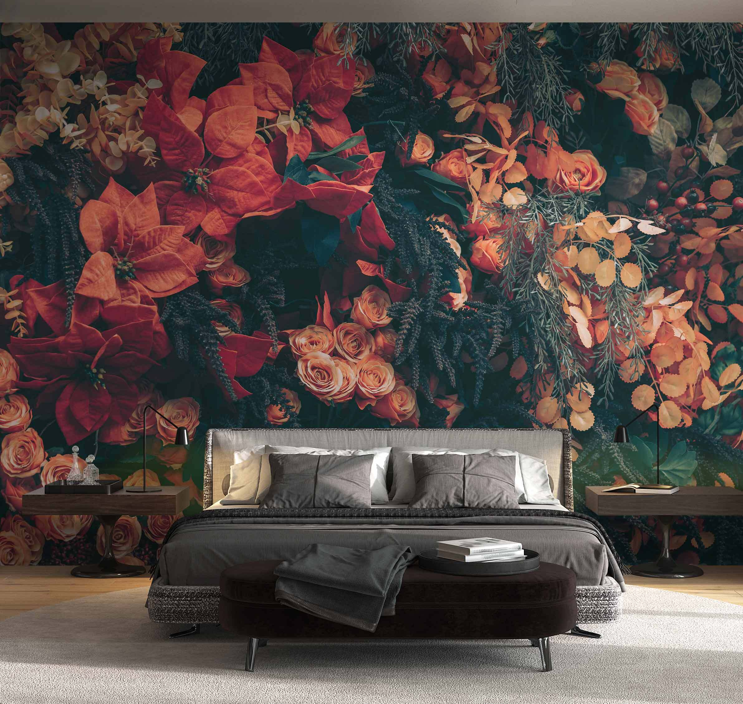 Proměňte obyčejnou stěnu v úžasnou ukázku přírody pomocí této živé nástěnné malby s podzimními květy. Představte si, že vstoupíte do útulného prostoru a přivítají vás ohnivé červené a teplé oranžové barvy, které téměř šeptají sladké pozvání k odpočinku. Hravá směs květin zde působí jako mini zahradní party, kde vás každý okvětní lístek zve na kus řeči. Bez námahy rozzáří každou místnost a dodá jí pocit života a přívětivosti. Tato nástěnná malba je ideální pro oživení obývacího pokoje nebo pro dodání veselého nádechu ložnici, je jako závan čerstvého podzimního vzduchu. Kdo by se nechtěl kochat takovou krásou?