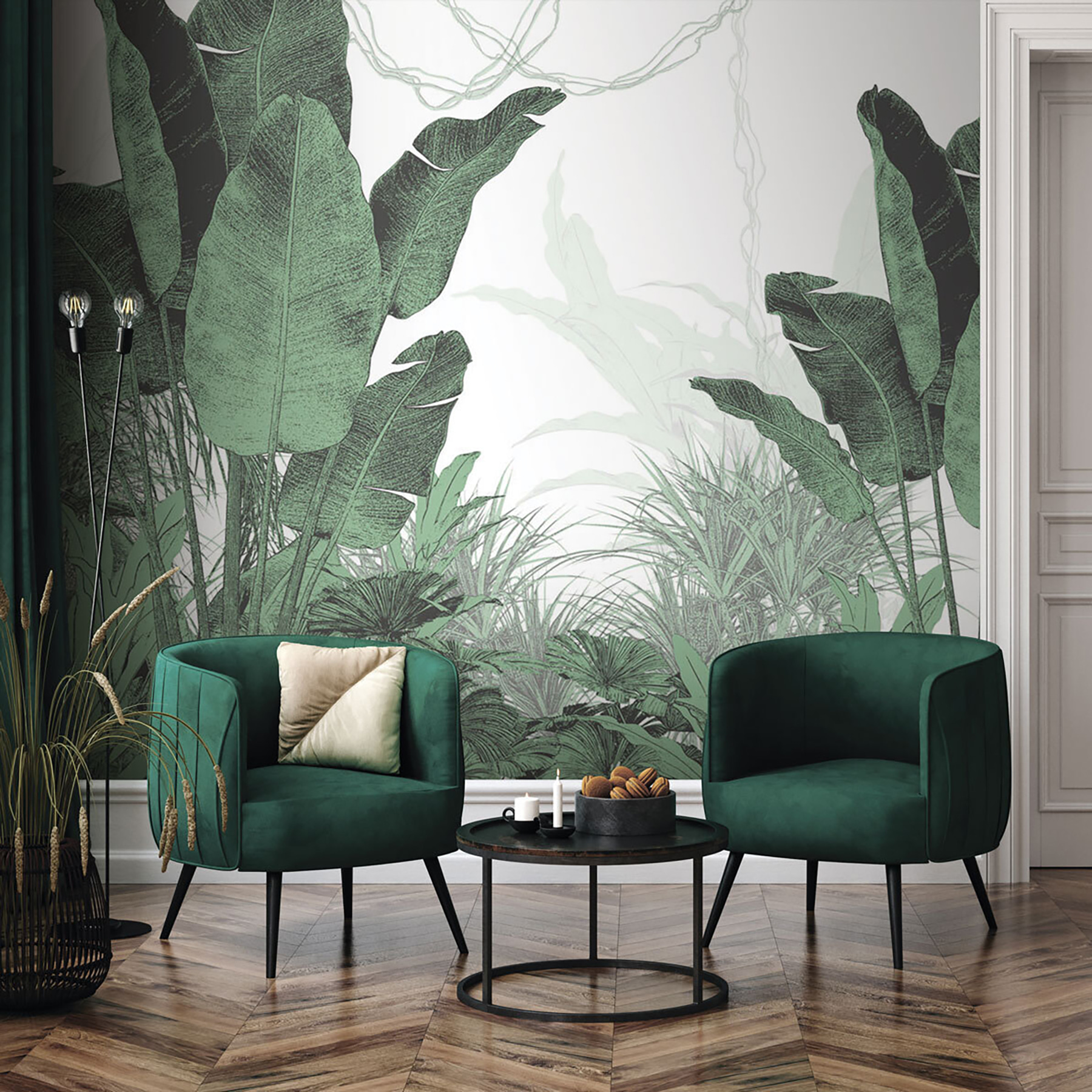 Proměňte svůj prostor v živoucí oázu s nástěnnou malbou “Bujná zeleň”. Představte si svěží tropickou zeleň přímo na své zdi – je to jako vstoupit do džungle bez vlhkosti. Tato fototapeta, která je ideální pro přidání nádechu přírody do každé místnosti, přináší uklidňující listnatou zeleň, díky níž možná zapomenete, že jste v interiéru. Představte si, že popíjíte ranní kávu obklopeni touto svěží zelenou scénou.