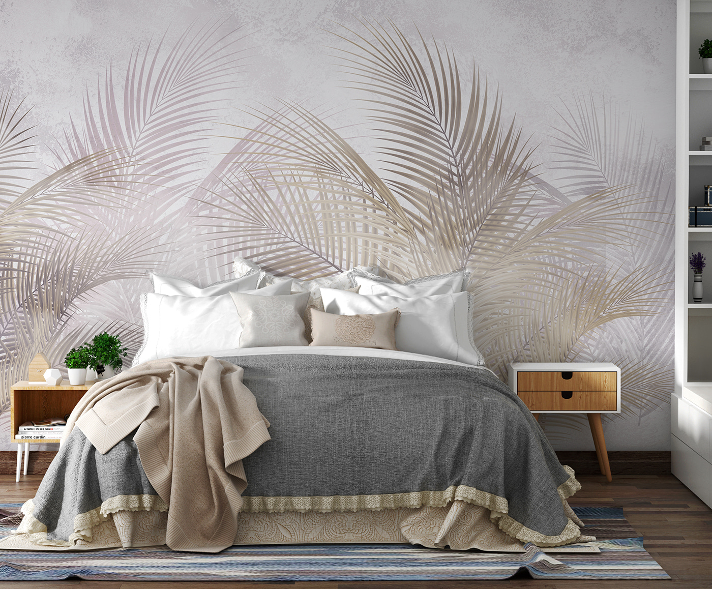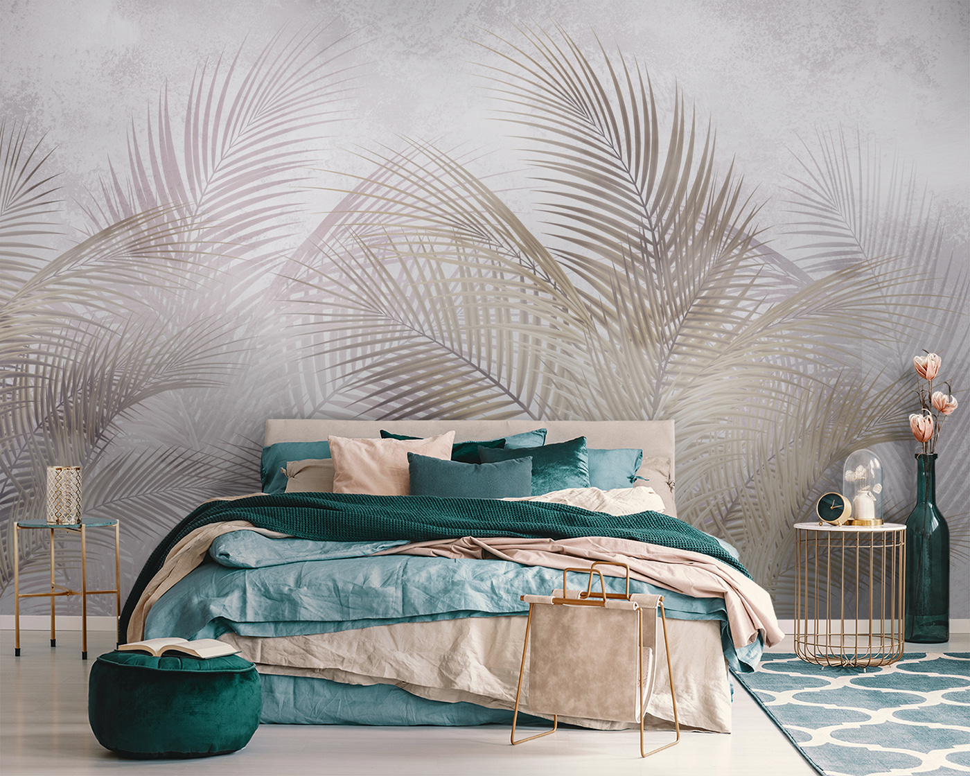 S touto úžasnou nástěnnou malbou s jemnými palmami a měkkými, snovými odstíny proměníte každou místnost v klidné útočiště. Je to jako přenést kousek venkovní přírody přímo do vašeho útulného obytného prostoru. Představte si, že hostíte přátele a oni obdivují uklidňující kulisu – možná si dokonce spletou vaši stěnu s uměleckou galerií! Jemné odstíny vytvářejí uvolněnou atmosféru, která je ideální pro popíjení kávy nebo odpočinek po dlouhém dni. Navíc, kdo by se nechtěl cítit jako na tropické dovolené přímo ze svého gauče? Tato nástěnná malba je závan čerstvého vzduchu a určitě vám rozjasní den!