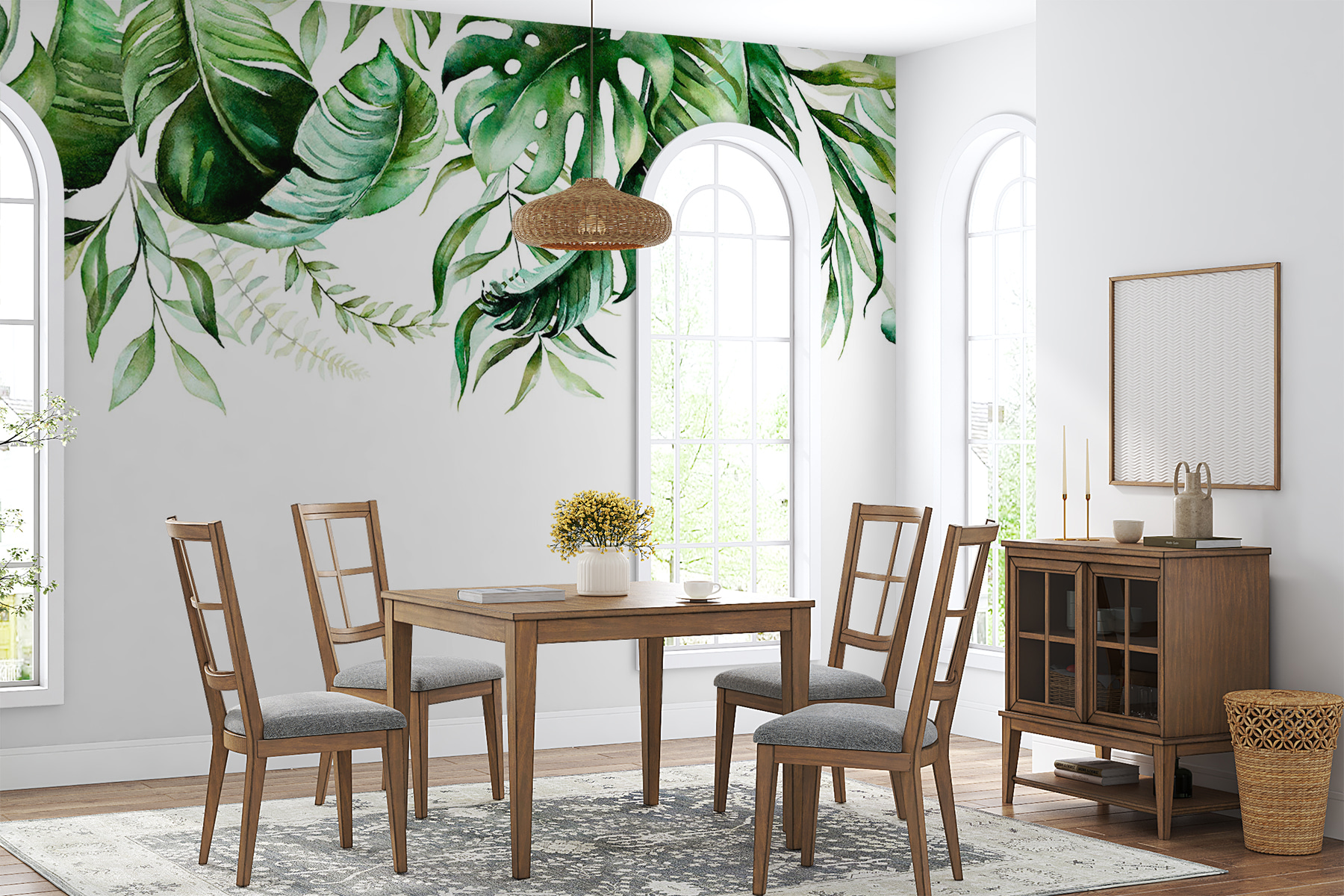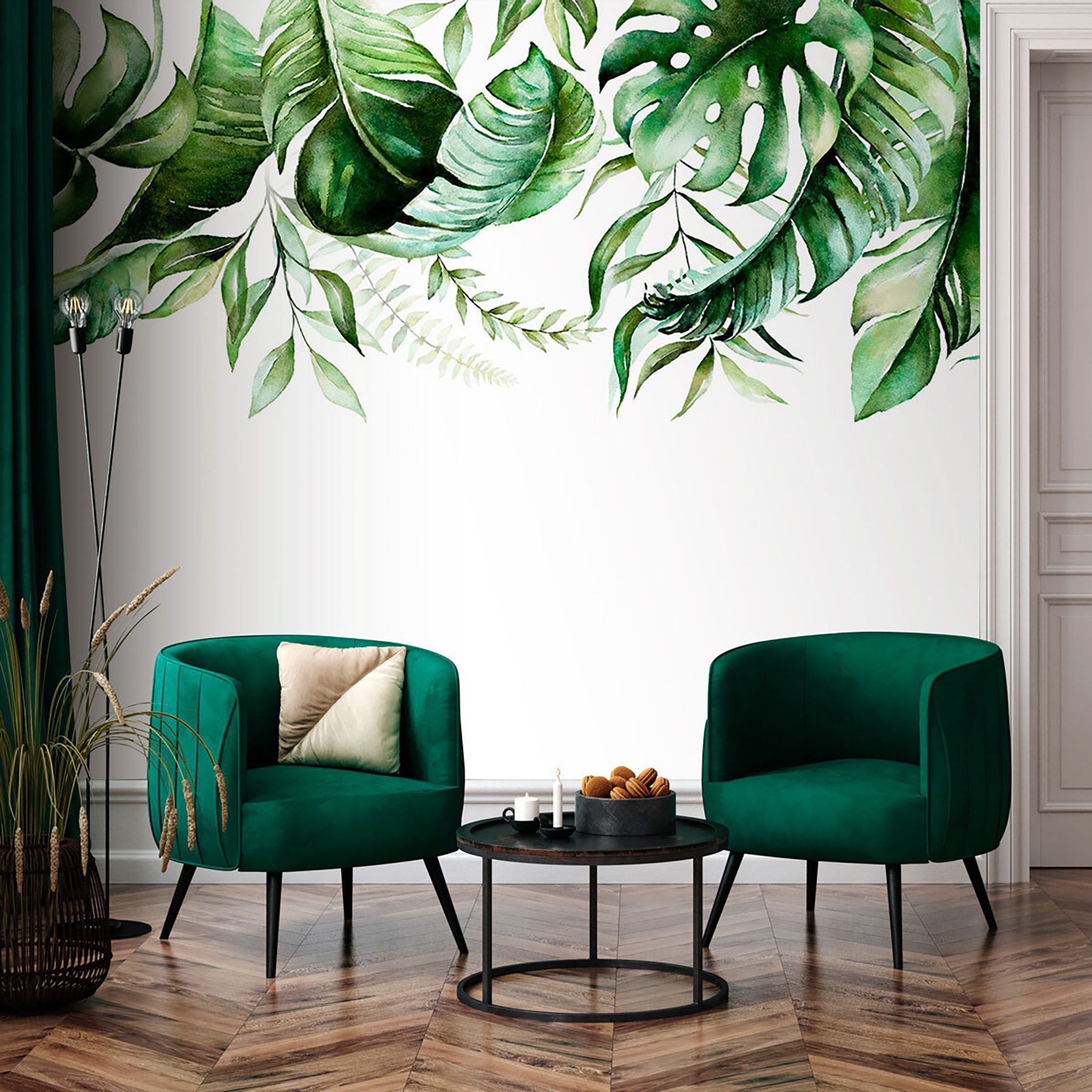 Proměňte nudnou stěnu v džungli díky této nástěnné malbě se svěžími zelenými listy. Není to jen tapeta, je to jako vnést do interiéru svěží vánek. Představte si, že popíjíte ranní kávu obklopeni tím nejkrásnějším z přírody – samozřejmě bez brouků. Různé odstíny listů spolu tančí a vytvářejí klidnou atmosféru téměř připomínající poklidnou procházku lesem. Skvěle se hodí do útulných zákoutí nebo jako výrazný kousek do obývacího pokoje. Vybízí ke snění o tropických útěcích, a to vše v pohodlí domova. Jen si představte ty komplimenty!