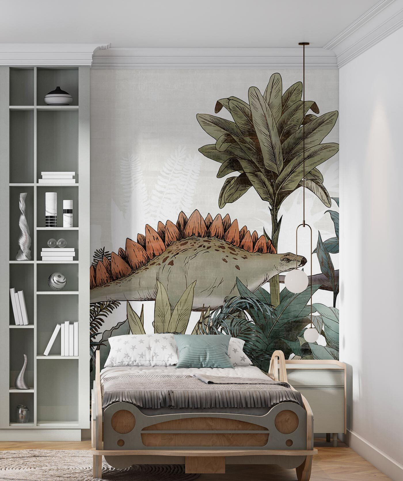 Vydejte se do jurského období s touto úžasnou nástěnnou malbou dinosaurů putujících bujnou vegetací! Tato nástěnná malba je ideální do dětského pokoje (nebo upřímně pro každého nadšence do dinosaurů) a přenese vás do světa, kde se volně pohybovali mocní dinosauři. Živá zeleň a zemité tóny se vzájemně prolínají, takže si budete připadat jako v prehistorické džungli. Představte si, že se vaše ratolest každý den probouzí s T-rexem a Brontosaurem. Ten pocit dobrodružství a zázraku je k nezaplacení! Není to jen nástěnná malba, je to každodenní objevování poháněné čistou představivostí. Nějaký řev, že?