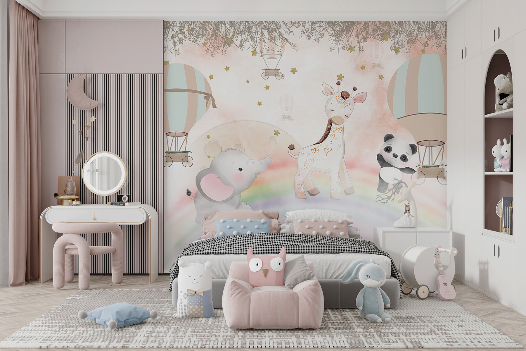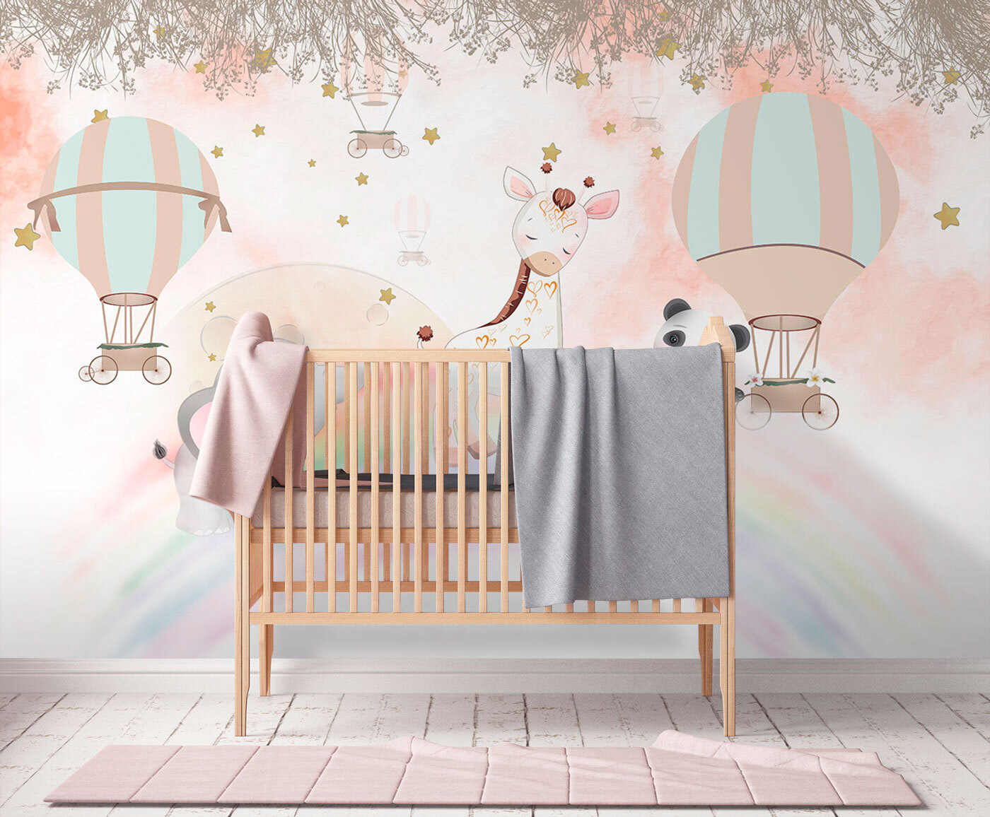 Rozjasněte dětský pokoj touto okouzlující nástěnnou malbou horkovzdušného balónu! Představte si snovou oblohu plnou rozmarných balónků, které se vznášejí nad roztomilými zvířátky – okouzlující žirafou, hravou pandou a roztomilým sloníkem. Je to scéna, která vybízí k dobrodružství a podněcuje fantazii. Jen si představte, jak se na ni malé děti dívají, odnášejí se do říše snů a sní o tom, jak se vznášejí vysoko nad mraky. Jemné barvy vytvářejí útulnou atmosféru, ideální pro plyšové pohádky před spaním. Tato nástěnná malba není jen dekorací, je to brána do světa fantazie. Kdo by se nechtěl připojit k těmto letům balonem? Promění každý prostor v hravé útočiště!