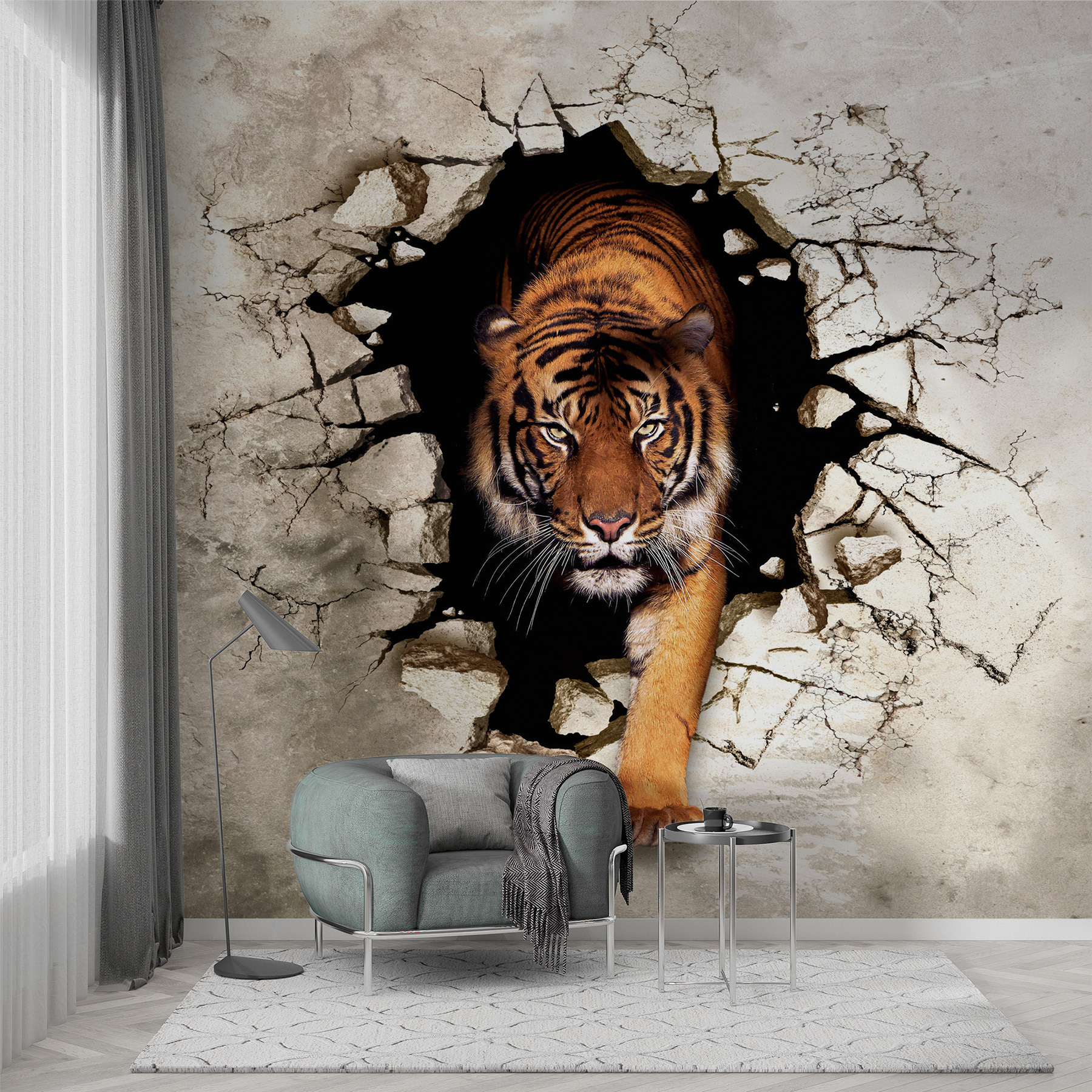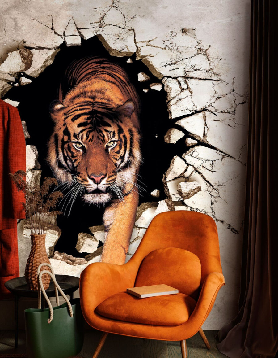 Přemýšleli jste někdy o tom, že by se do vaší zdi vřítil zuřivý tygr? Tato úžasná nástěnná malba tygra, který se vynořuje skrz popraskanou zeď, je ideální, pokud máte rádi divokou výzdobu! Představte si to: vejdete do obývacího pokoje a tam je, tygr vystupující s tím intenzivním, podmanivým pohledem. Je to, jako byste měli kousek džungle přímo u sebe doma, který se prodírá betonem. Je to dramatické, poutavé a upřímně, je to docela vzrušující. Kdo by nechtěl ve svém prostoru trochu dobrodružství? Navíc je to skvělý začátek konverzace – vaši hosté o tom nepřestanou mluvit! Přidejte do výzdoby svého pokoje trochu řevu s touto fascinující 3D fototapetou. Věřte mi, že se vám bude líbit její odvážné prohlášení!
