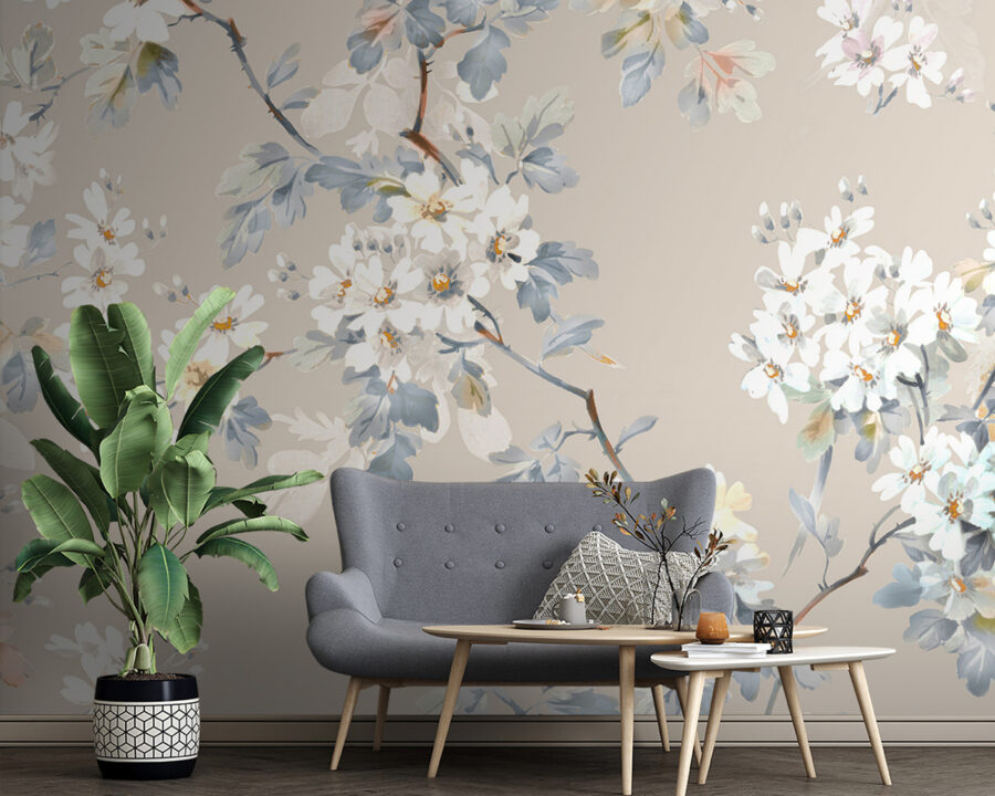 Máte holou zeď, která si žádá osobitý vzhled? Přivítejte tuto jemnou květinovou fototapetu! Je to vše o tom, jak do interiéru vnést klid a krásu přírody. Představte si jemné, pastelové květy a listy ladně tančící na jemném béžovém pozadí. Je to jako klidná procházka rozkvetlou zahradou – aniž byste si zablátili boty!