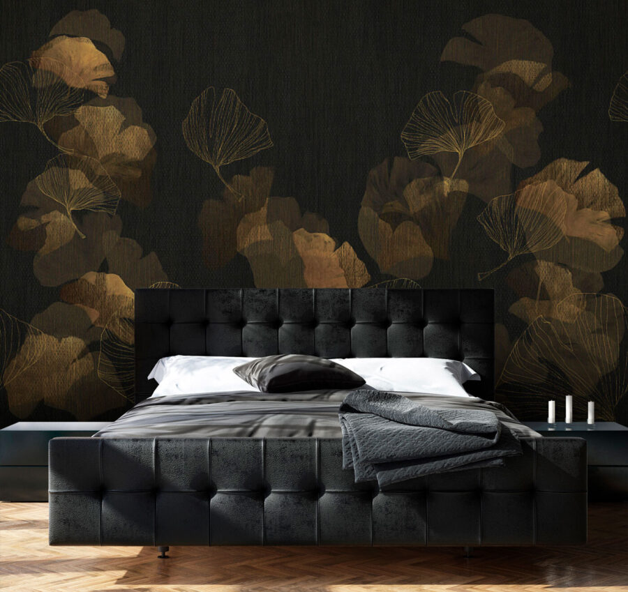 Proměňte svůj prostor pomocí této úžasné nástěnné malby s jemnými listy na tmavém pozadí. Představte si, že vejdete do místnosti, kde se příroda snoubí s elegancí a zahalí vás do útulného objetí. Dodává stěnám lehce elegantní nádech, díky němuž ožívají, aniž by zahlcovaly smysly.