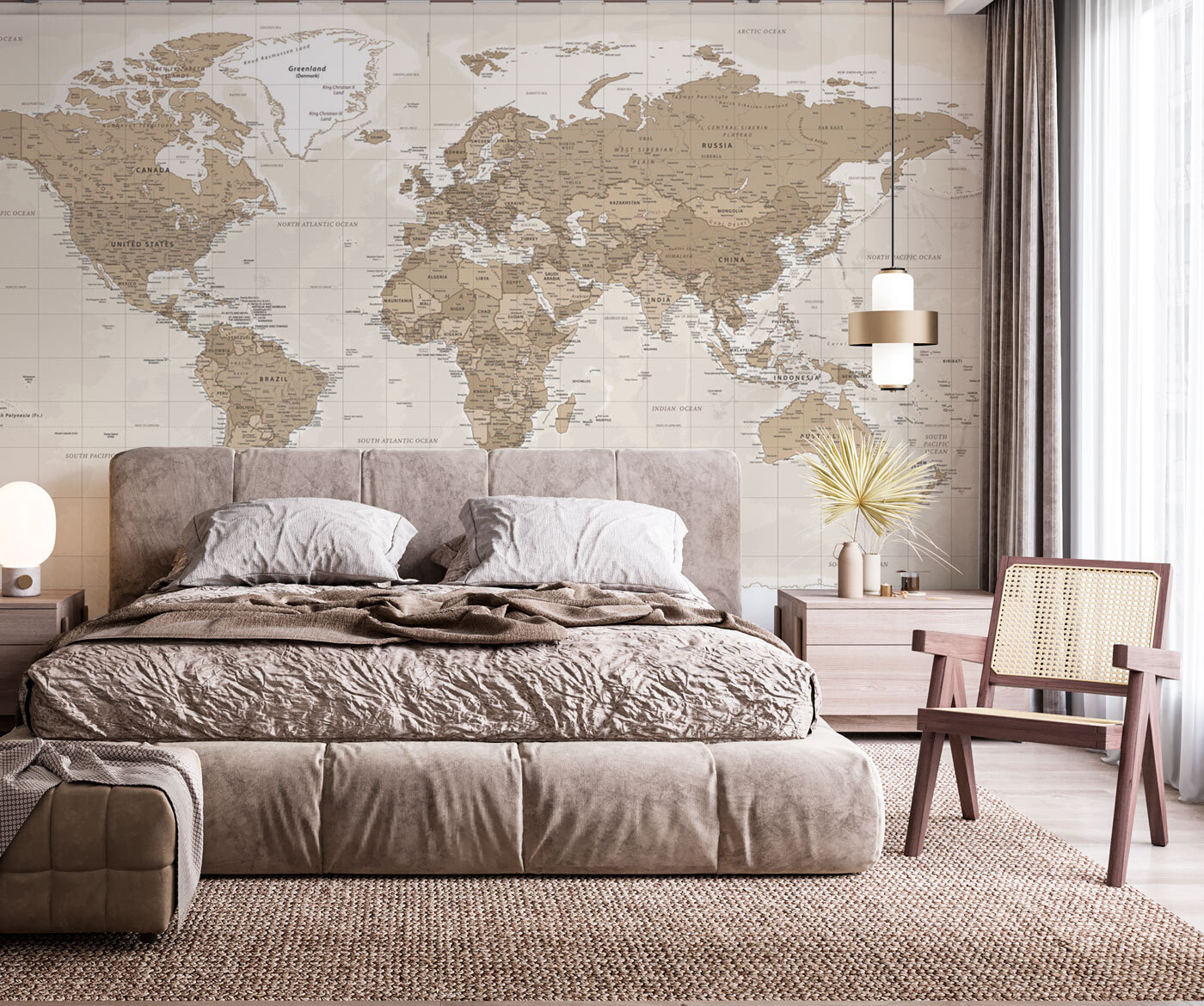 Máte na stěně místo, které by potřebovalo trochu šmrncu? Podívejte se na tuto nástěnnou malbu “Mapa světa” z naší kolekce Contemporary. Není určena jen pro milovníky zeměpisu – představte si, že si každý den uděláte duševní dovolenou pouhým pohledem vzhůru. Zemité tóny jí dodávají hřejivou a příjemnou atmosféru, která se hodí prakticky kamkoli, od obývacího pokoje po útulný studijní kout. A navíc se s ním dá dobře konverzovat. Přátelé se zastaví a najednou si vyměňujete historky z cest nebo společně vymýšlíte nová dobrodružství. Jen si vzpomeňte, že v jednu chvíli zíráte na prázdnou zeď a v další si mapujete sny. Pěkné, co říkáte?