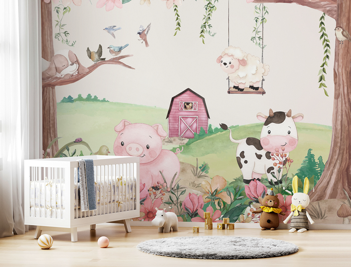 Ahoj! Podívejte se na tuto rozkošnou nástěnnou malbu – jmenuje se ‘Fototapeta Pink Barn with a Chicken in the Window’. Upřímně řečeno, je to příliš roztomilé na to, aby se to dalo popsat slovy! Perfektně se hodí k tomu, aby dodala šmrnc každému dětskému pokoji, herně nebo dětskému prostoru. Představte si, že se každý den probouzíte s tímto roztomilým výjevem: zářivě růžová stodola s vykukujícím zvědavým kuřetem, obklopená veselými zvířátky a barevnými květy. Je to jako oživlá pohádková kniha!