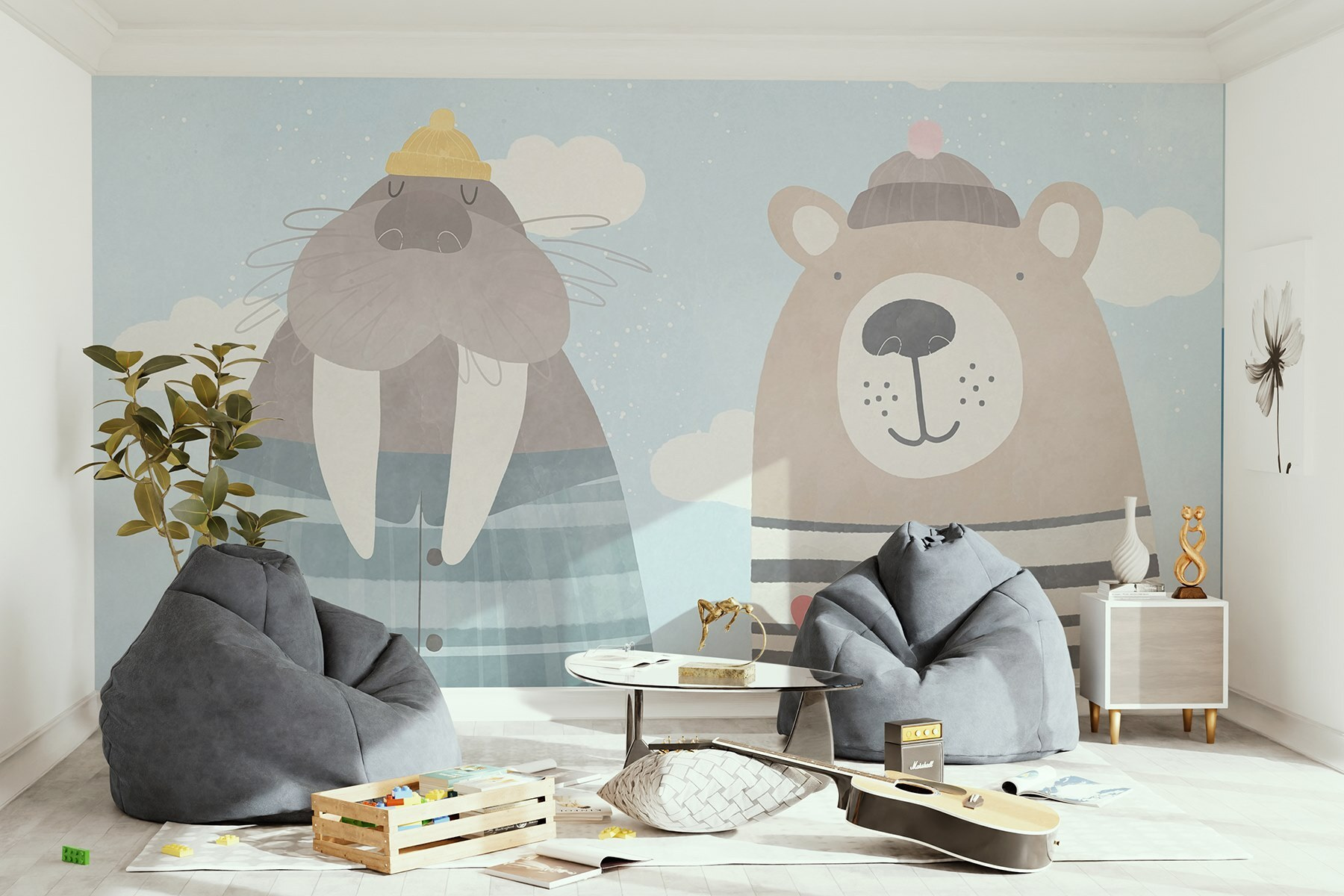Podívejte se na tuto nádhernou nástěnnou malbu! Je na ní okouzlující mrož v klobouku a šortkách a je jako stvořená k tomu, aby do dětského pokoje vnesla trochu zábavy a rozmarů. Copak to nevidíte? Představte si, jak se dětem rozzáří oči, až spatří svého nového mrožího kamaráda, jak se baví s přátelskými ptáky. Je to jako mini dobrodružství na stěně – ideální pro rozvíjení představivosti během hraní nebo pohádek před spaním. Navíc se díky jemným barvám snadno hodí téměř k jakémukoli interiéru. Sladké, že? S touto fototapetou bude každý den vypadat jako jemný, slunečný den u moře.