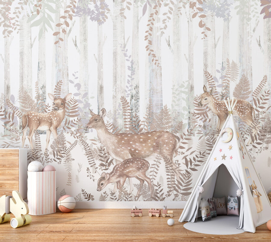 Viděli jste někdy nástěnnou malbu s jeleny skotačícími v lese? Tahle je prostě kouzelná – je to výjev jako z pohádky! Představte si pokoj vašeho děťátka s tímto kouzelným potiskem; jemné barvy a jemné textury jsou ideální pro rozvíjení představivosti během hraní nebo vyprávění před spaním. Na těch roztomilých jelenech je něco uklidňujícího – vypadají, že jsou téměř připraveni seskočit ze zdi. Ať už se jedná o zasněný prostor vaší dcery nebo klidný dětský pokoj pro vaše miminko, tato nástěnná malba dodá rozmarný, ale klidný nádech. Je to víc než dekorace, je to ryzí lesní kouzlo!