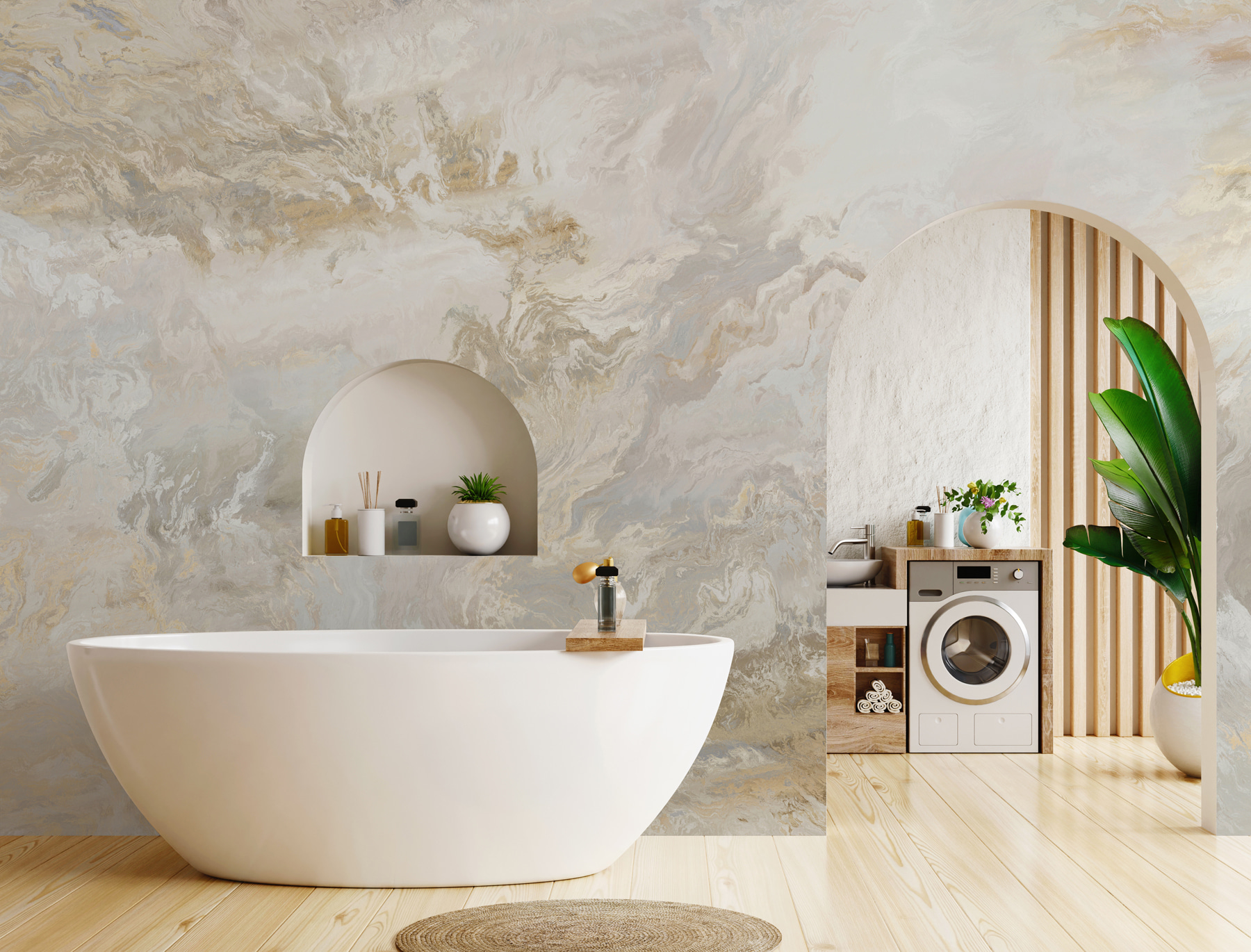 Proměňte každou místnost pomocí této elegantní vířivé mramorové nástěnné malby. Její jemné tóny a splývavé vzory vytvářejí uklidňující útočiště přímo u vás doma. Představte si, že vejdete do svého prostoru a okamžitě se cítíte uvolněně, jako byste popíjeli latté v elegantní kavárně, a ne zírali na obyčejnou zeď. Tato nástěnná malba, ideální do obývacího pokoje nebo klidného zákoutí, vybízí k nekonečnému snění. Je to, jako by se umění a dekorace spojily a uspořádaly u vás doma krásný večírek! Díky snadnému odlepení a nalepení navíc budete svou proměnu stěny obdivovat během chvilky – bez špinavého lepidla. Kdo by řekl, že změna atmosféry může být tak jednoduchá?