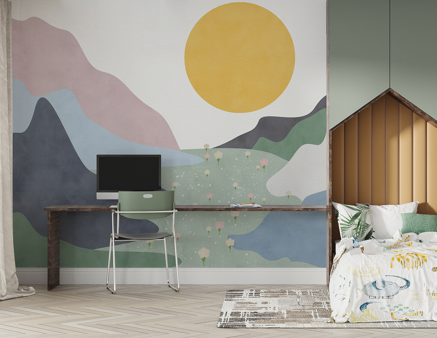 Rozjasněte jakýkoli prostor touto hravou fototapetou se zářivě žlutým kruhem, který na ostrém bílém plátně působí jako výbuch slunečních paprsků. Je to ten typ designu, který vás rozesměje pokaždé, když vejdete do místnosti. Je ideální pro dětské prostory, vybízí k představivosti a úžasu a promění každou stěnu ve veselou kulisu pro chichotání a příběhy. Představte si malé nožky tančící kolem, inspirované všemi těmi barvami. Ať už se jedná o dětský pokoj, hernu nebo oblíbený čtecí koutek, tato fototapeta nabízí rozmarný nádech, který podporuje kreativitu a radost.