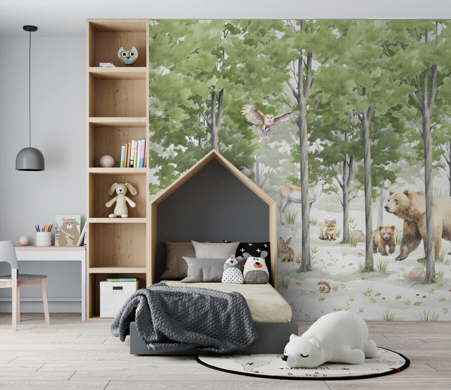 Představte si, že každý den vstoupíte do svého vlastního kouzelného lesa – přesně to vám zajistí tato nástěnná malba “Skupina zvířat v lese”. Jako by vaše stěny ožily přátelskými zvířátky, od zvědavých lišek přes majestátní jeleny až po hravé medvídě. Není to jen nástěnná malba, je to okno do jiného světa, kde je vzduch svěžejší a stres se prostě rozplyne.