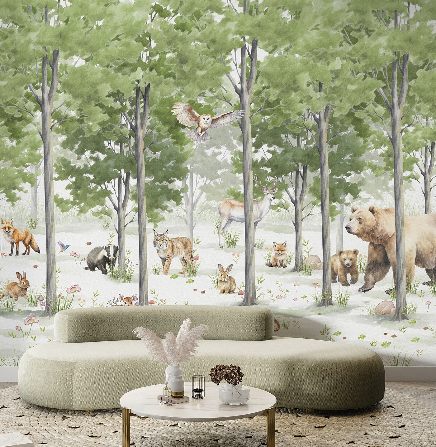 A hele, jemná zeleň a detaily jsou prostě uklidňující. Ať už si představíte jemné šustění listů, nebo jemný pohyb zvířat, určitě se díky nim bude každý prostor cítit o něco kouzelněji. Ideální pro každého, kdo sní o přírodě bez otravných komárů. Pusťte se do toho a nechte své stěny vyprávět příběh.