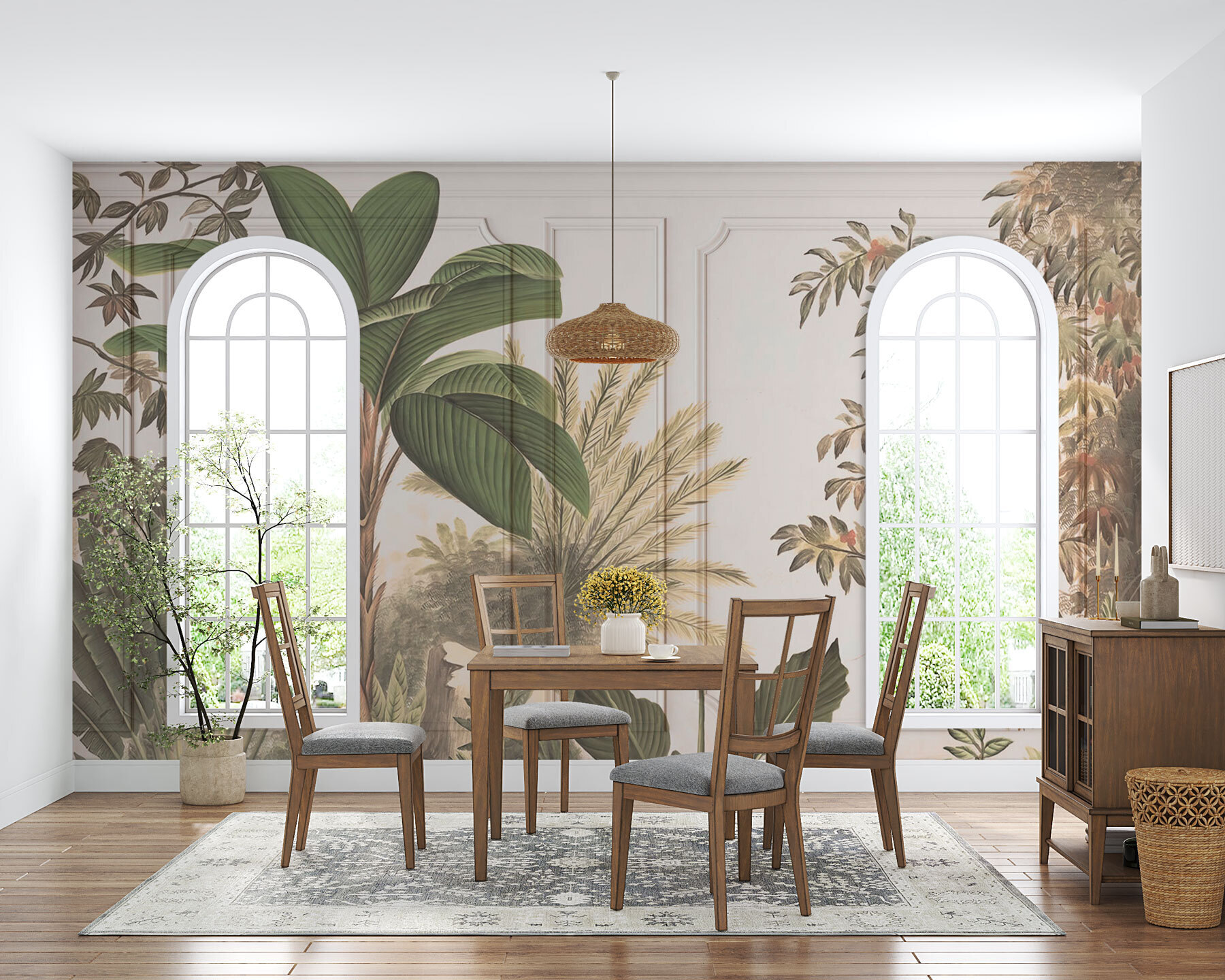 Představte si, že vejdete do svého pokoje a BUM! na stěně máte bujnou scénu z džungle. Tato nástěnná malba je jako vstup do exotické země přímo z vašeho obývacího pokoje. Představte si zelenou zeleň a stromy, které si dělají, co chtějí, a pohupují se v neviditelném vánku. Má tu správnou tropickou atmosféru, díky níž bude váš prostor působit svěže a živě.