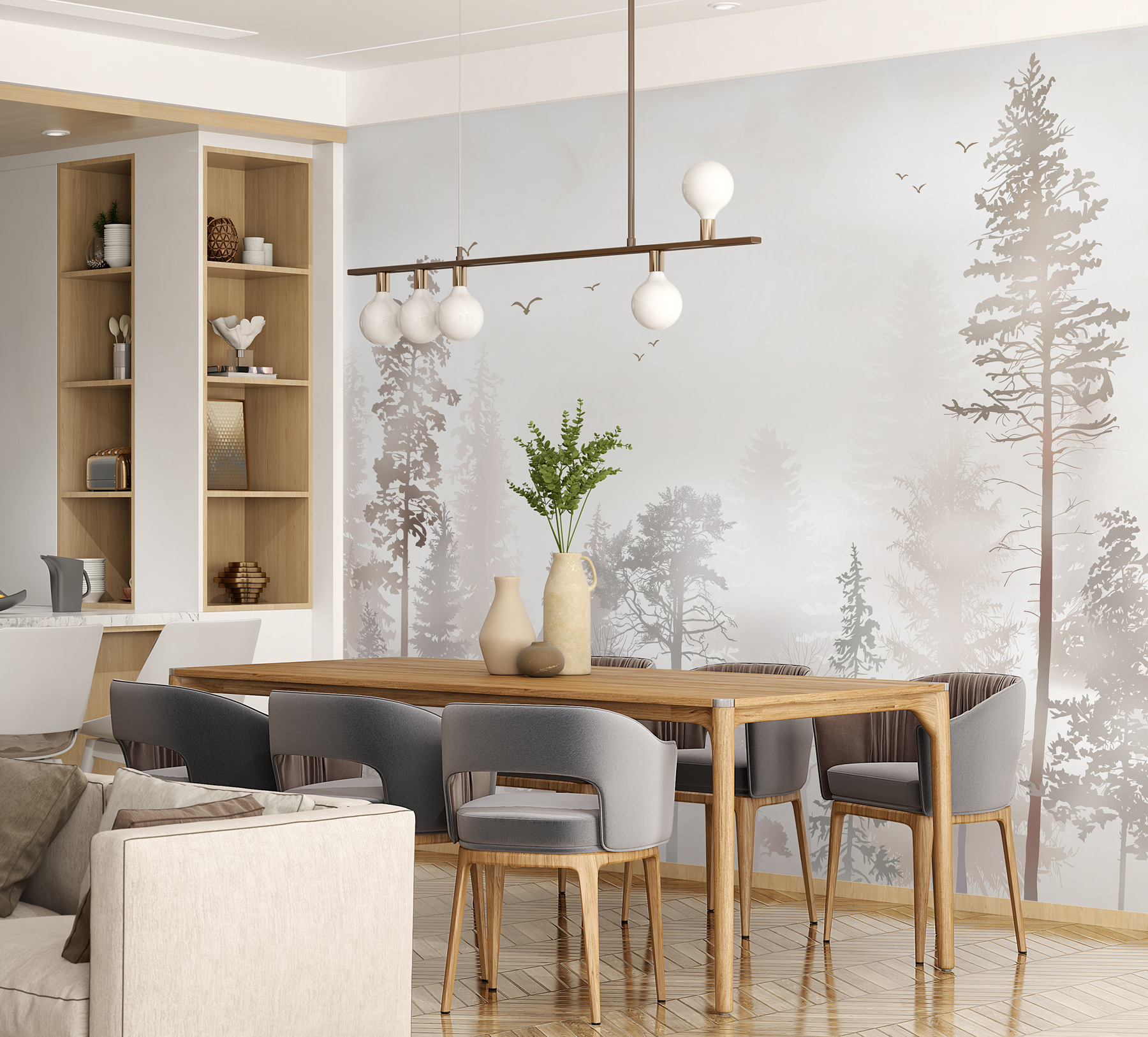 Chcete změnit nudnou stěnu? “Stín stromu” je nástěnná malba, která vnese uklidňující atmosféru mlžného lesa přímo do vašeho domova. Představte si, že popíjíte ranní kávu s výhledem na klidné stromy zastíněné měkkým, mlhavým světlem. Je to jako vstoupit do pohádkového lesa – aniž byste museli opustit svůj obývací pokoj. Tato nástěnná malba se skvěle hodí do útulných čtecích koutků, moderních obývacích pokojů nebo dokonce do vyšperkovaných kancelářských prostor. Je to dokonalá kombinace přírody a umění a upřímně, komu by se nehodila trocha klidného lesa ve dne?