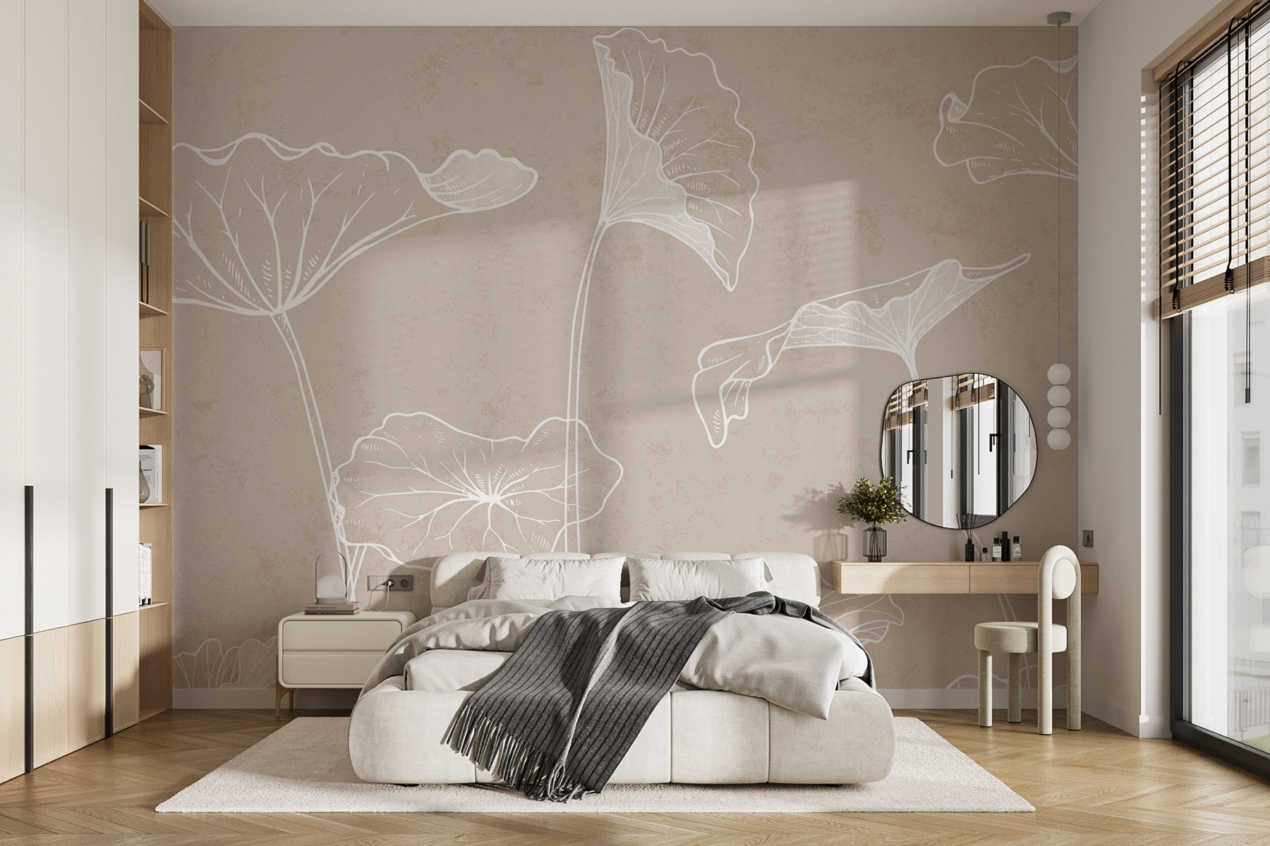 Proměňte každou místnost pomocí této úžasné nástěnné malby s elegantní kresbou listů, která dodá vašemu prostoru nádech přírody. Jen si to představte – vejdete do svého domova a bum! Okamžitá atmosféra. Měkké odstíny a jemné obrysy vybízejí k pocitu klidu a promění i ty nejnudnější stěny v klidná plátna. Je to jako přenést venkovní vánek do interiéru, ideální pro líná odpoledne s knihou nebo útulná setkání. Jen si představte, jak přátelé jásají nad vaším vkusem! Tato nástěnná malba bez námahy pozvedne náladu a dodá prostorům pocit svěžesti a zároveň přívětivosti. Ideální pro milovníky přírody nebo pro každého, kdo chce přidat trochu šarmu – vaše stěny vám poděkují.