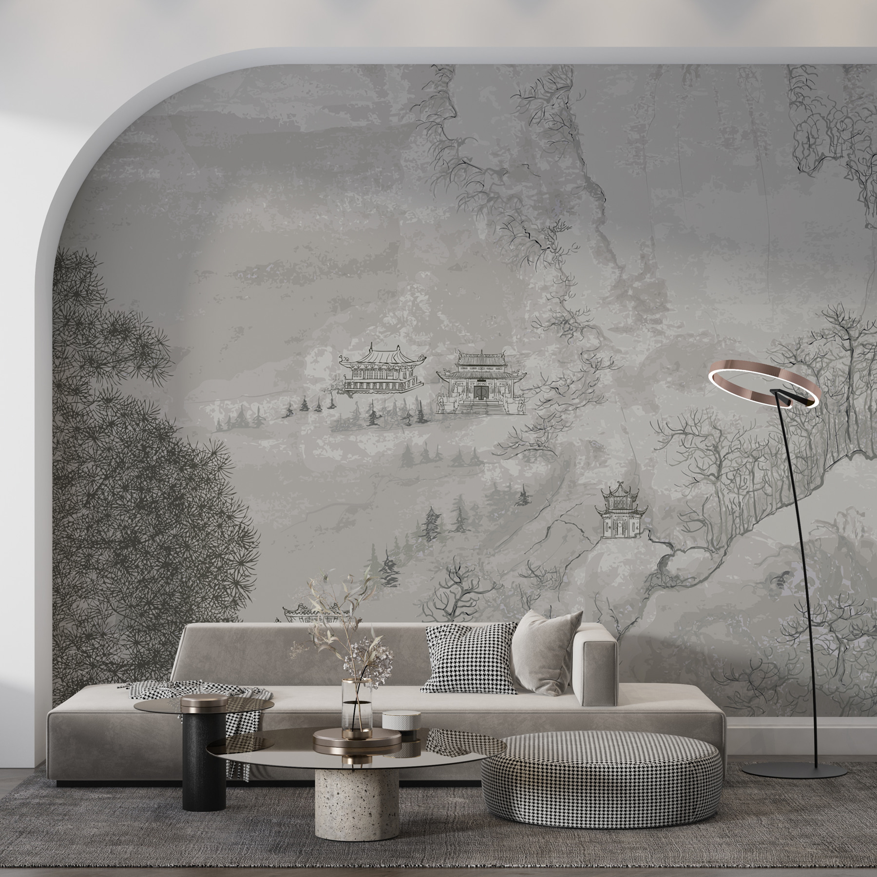 Proměňte svůj prostor pomocí této úchvatné nástěnné malby, která vnese klidné architektonické kouzlo přímo na vaše stěny. Představte si to: vzdálená krajina elegantních budov zasazená mezi jemně se pohupující stromy vytváří oázu klidu. Je to jako mít kus přírody a uměleckého díla dohromady, které šeptá příběhy vzdálených krajů. Představte si, že popíjíte ranní kávu při pohledu na tuto scénu – klidnou, mírumilovnou a trochu inspirující. Ideální pro ty útulné kouty nebo výraznou stěnu, která potřebuje trochu lásky. Popusťte uzdu svému vnitřnímu dekoratérovi a nechte tuto nástěnnou malbu zažehnout radost ve vašem domově!