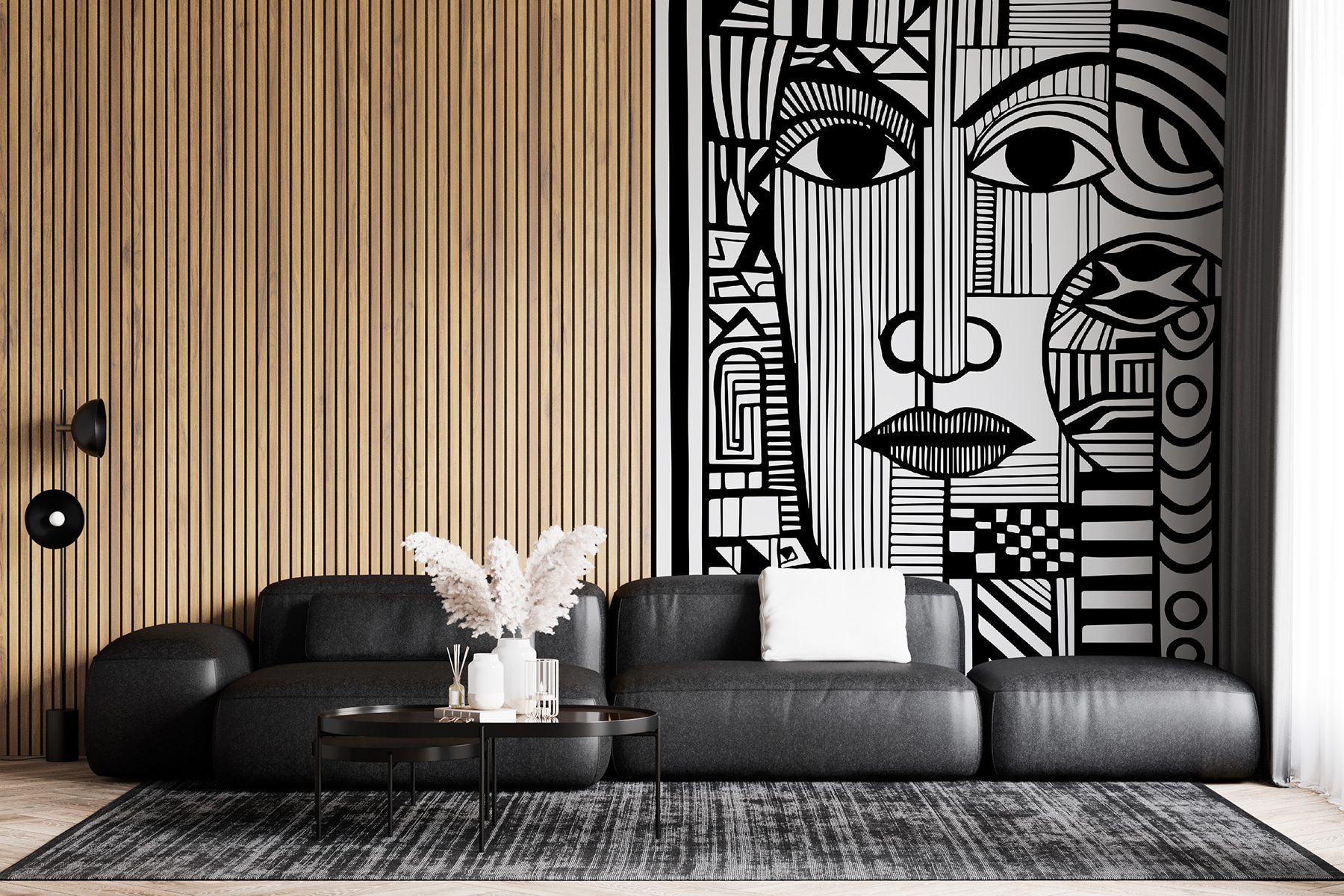 Tato nástěnná malba je prostě… poetická. Představte si tuto černobílou kresbu obličeje na zdi – je to víc než jen umění. Je to jako mít nadčasový kus kreativity, který vás vítá každý den. Výrazný a odvážný design může zcela proměnit váš pokoj v umělecké útočiště. Čáry a tvary jsou tak dynamické, že by jimi vaše oči mohly bloudit celé hodiny, tak trochu jako byste se ztratili v dobrém příběhu. Ideální pro lidi, kteří si cení jemnějších a funkčnějších věcí v životě. Představte si to: pověsíte si ho do obývacího pokoje a váš prostor najednou bude šeptat sofistikovanost s nádechem rebelského ducha. Navíc je to skvělý začátek konverzace. Ať už pořádáte nóbl večeři nebo neformální setkání, tahle nástěnná malba vám kryje záda. Váš domov bude hned o něco víc cool.