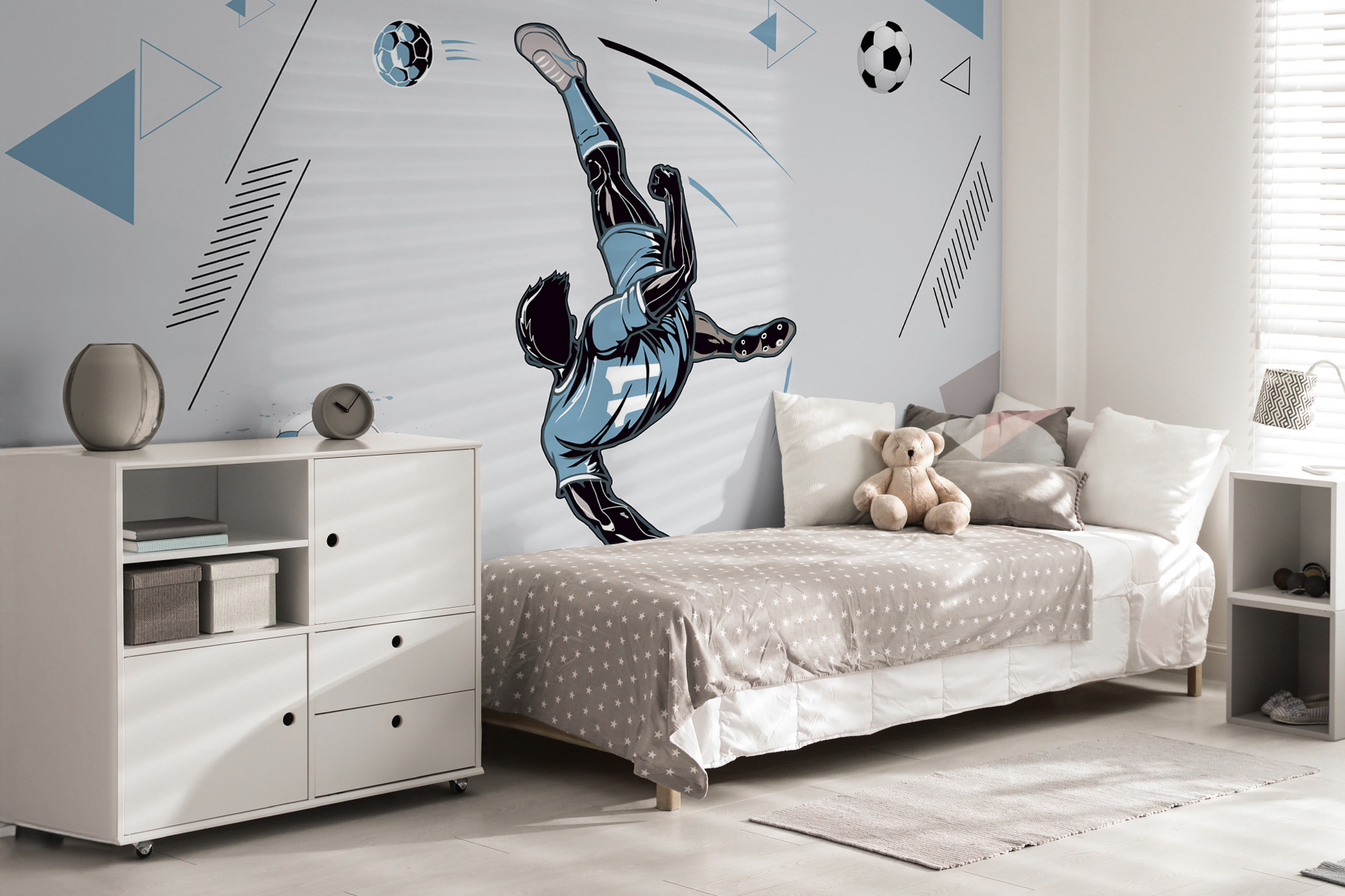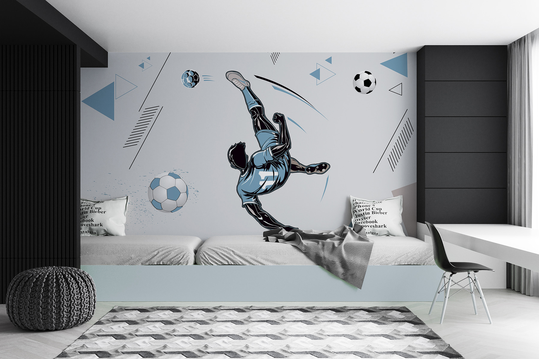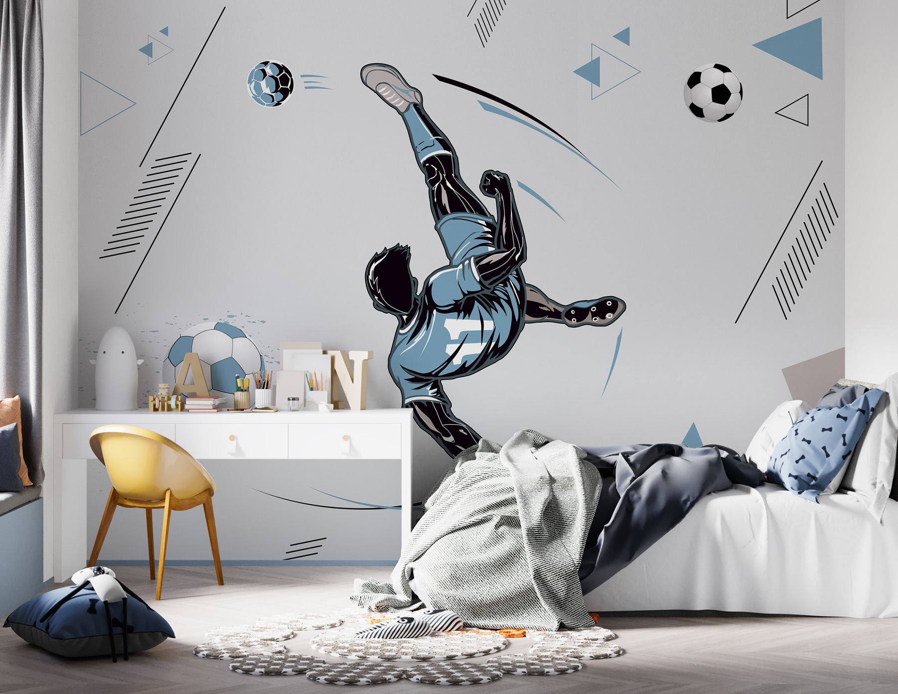 Ať už jste zarytý fotbalový fanoušek, nebo jen milujete jedinečné dekorace, tato nástěnná malba určitě získá vážné stylové body – jen do toho, dejte svým stěnám trochu šťávy!