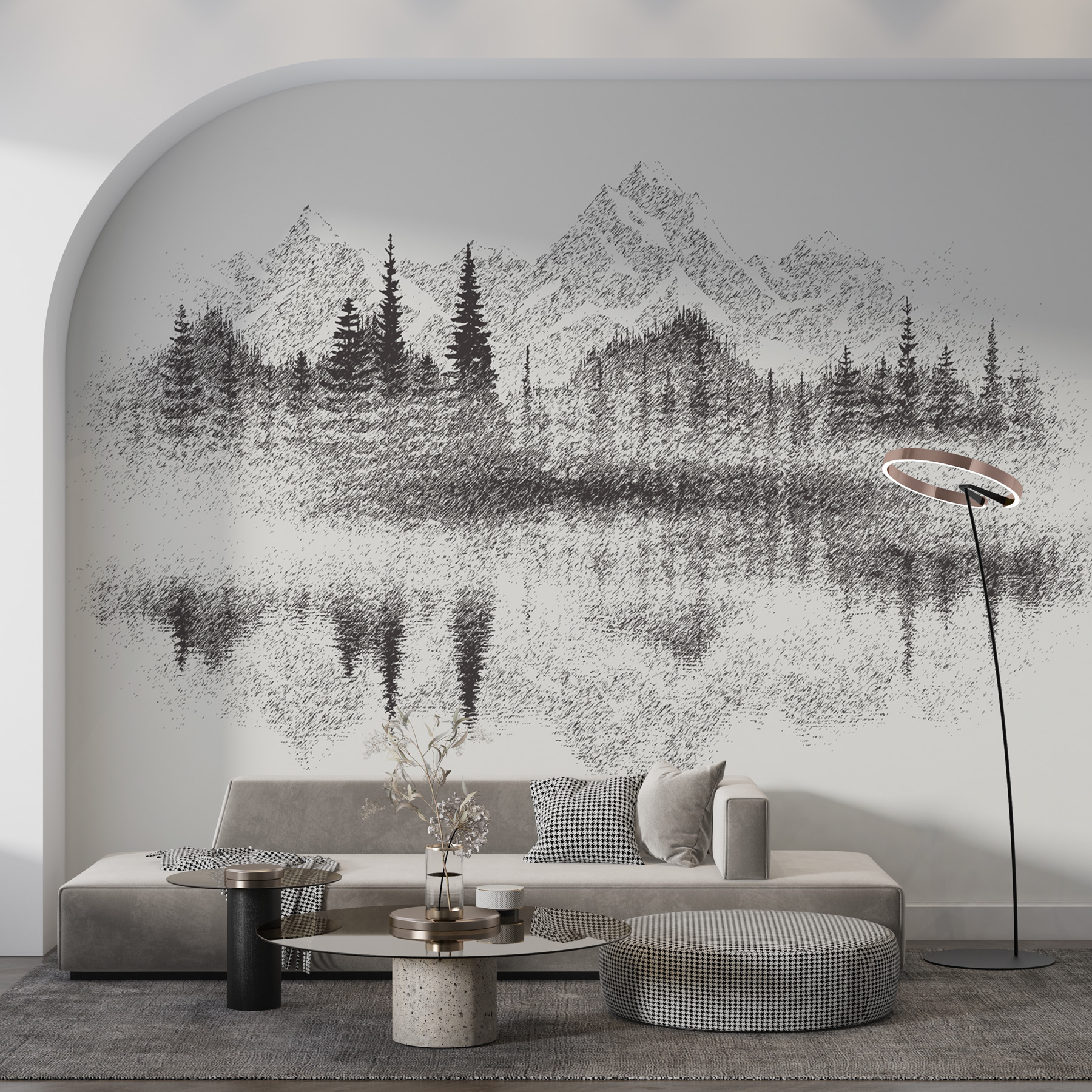 Představte si, že vejdete do pokoje a přivítá vás klidná atmosféra mlhavého horského rána. Tato nástěnná malba “Černá silueta stromu” je jako okno do lesa. Měkké šedé tóny vytvářejí pocit klidu – ideální pro uklidnění po dlouhém dni. Není to jen tak ledajaká nástěnná malba, je to kousek přírody přímo na vaší zdi. Probuďte se pohledem na vysoké stromy odrážející se v klidném jezeře a nechte svou mysl bloudit. Ideální do obývacího pokoje, ložnice nebo kamkoli, kde chcete mít nádech klidu. Navíc je to skvělý začátek konverzace. Kdo by řekl, že nástěnné umění může být tak pohodové?