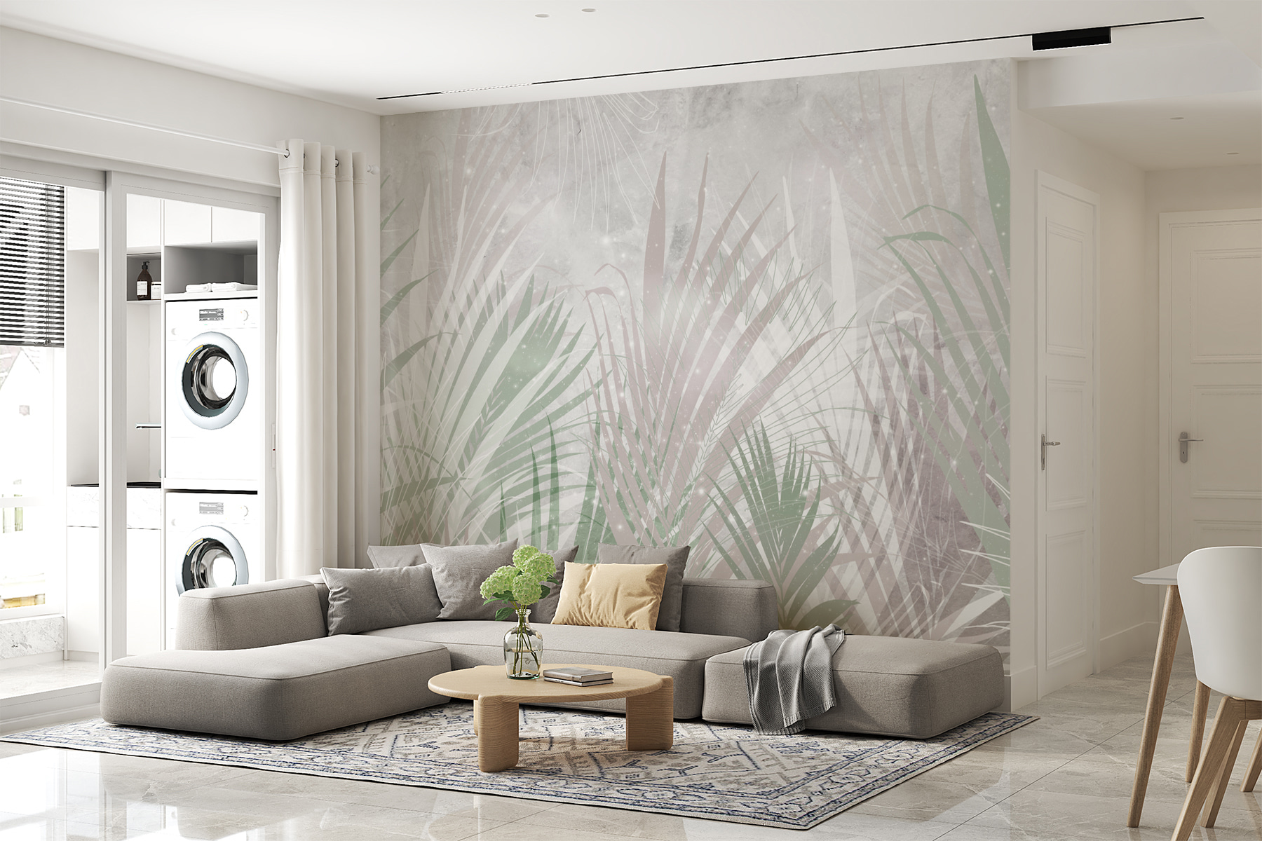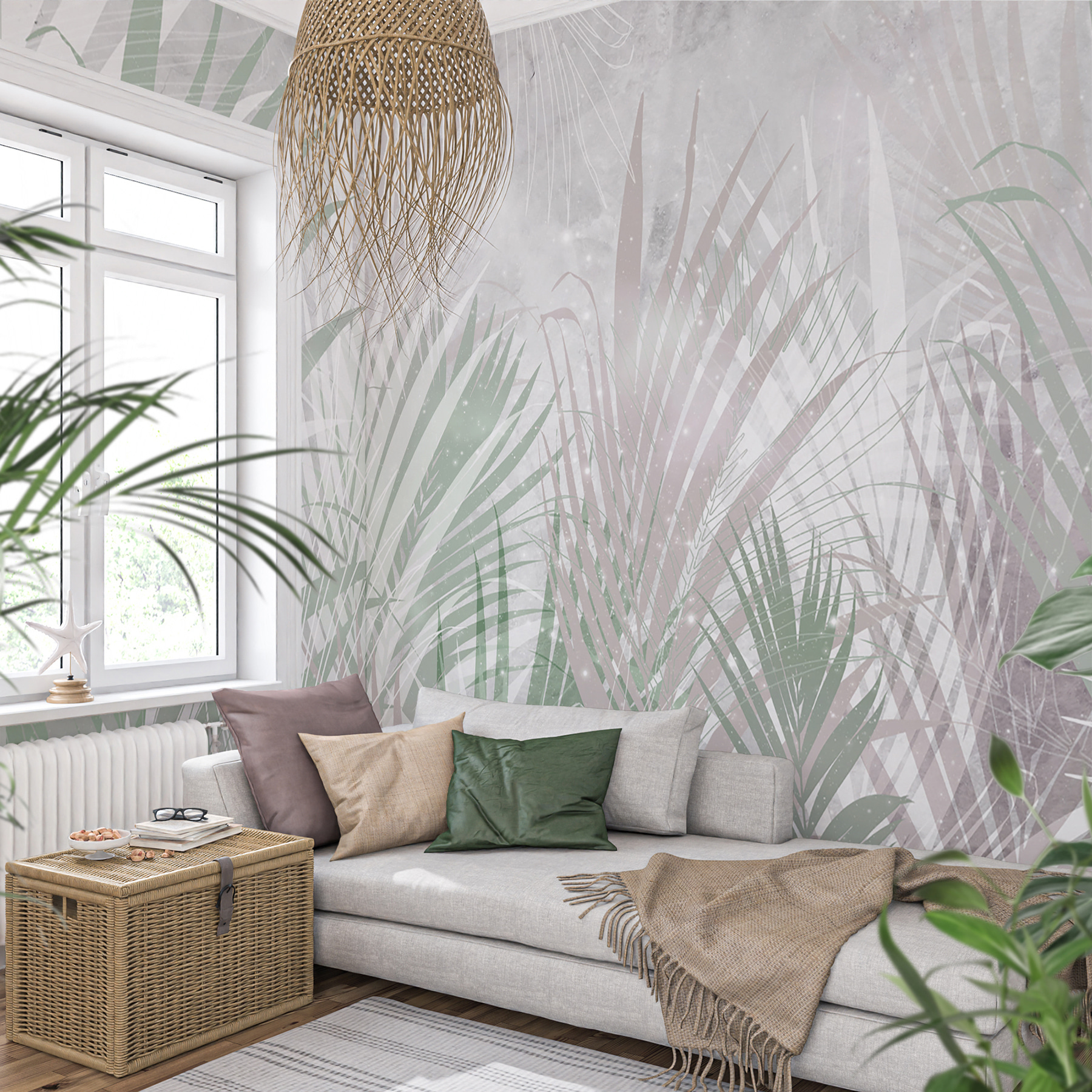 Tady je nástěnná malba, která je stejně okouzlující jako elegantní – tropická oáza přímo na vaší zdi. Představte si to: Hravá kočka se zvědavýma očima hledí na něco, co je mimo dohled, obklopená půvabně propracovanými palmovými listy. Tlumená zelená a jemná šedá dodávají nádech klidu a jsou ideální pro proměnu jakéhokoli prostoru v pohodový úkryt. Je to jako přenést si klid džungle přímo do obývacího pokoje – ale bez vlhkosti! Ideální pro každého, kdo chce do svého interiéru vnést trochu exotického kouzla. Navíc se s ním dá začít konverzace – hosté se určitě budou ptát: “Na co se to ta kočička dívá?”. Ať už se choulíte do klubíčka s dobrou knihou, nebo pořádáte setkání, tato nástěnná malba vytvoří dokonalé pozadí a nabídne únik od každodenního shonu.