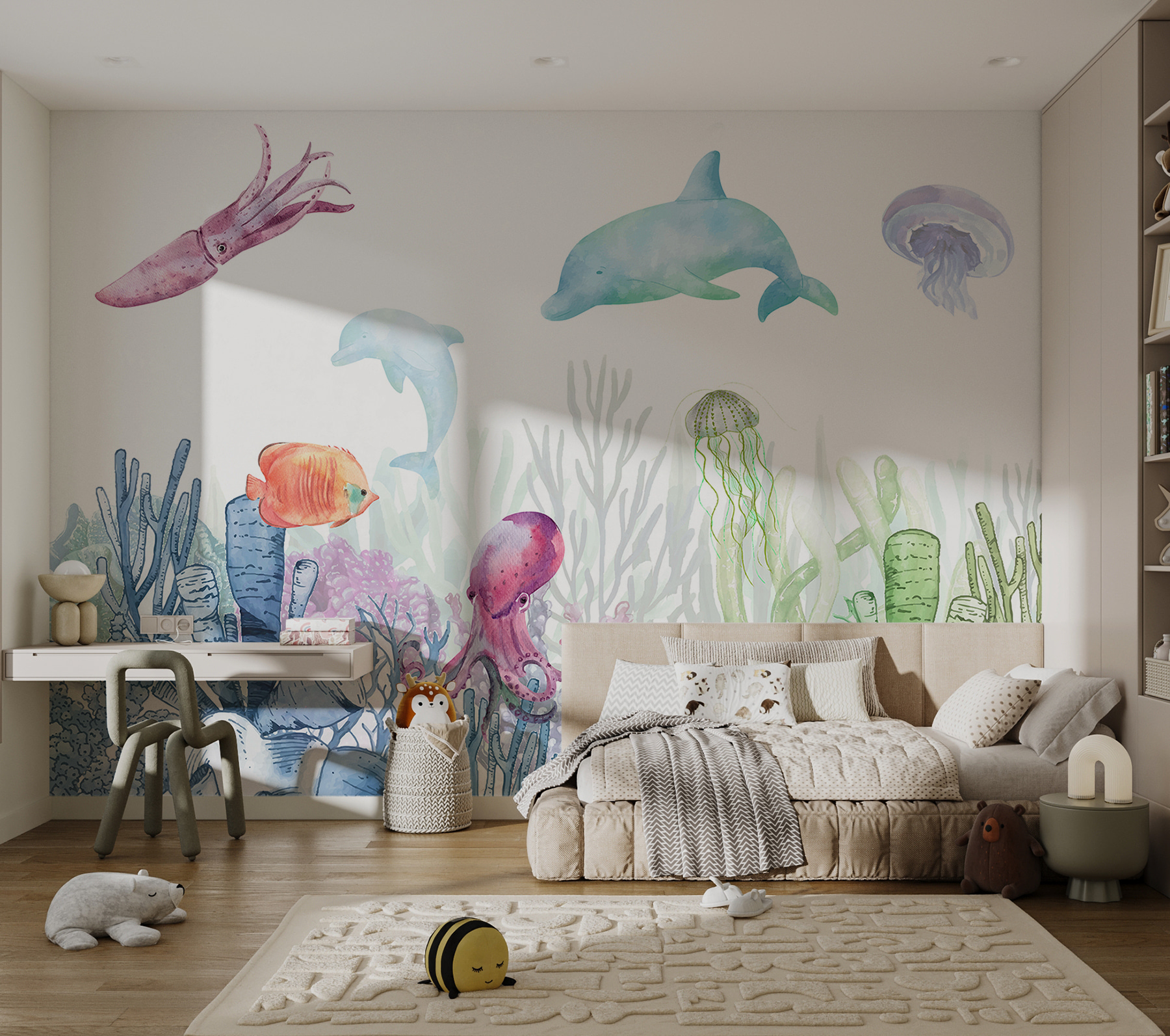 Představte si, jak se vaše dítě chichotá u přátelských rybiček nebo jak váš syn sní o výpravách do oceánu. Jemné pastelové barvy se tak dobře kombinují, téměř jako by je namalovala sama oceánská mlha. Je to jako minidovolená, aniž byste museli opustit dům! Navíc je to fantastický začátek konverzace; hosté budou všichni: “Páni, kde jsi to našel?”. Dokonce i vaše vnitřní dítě možná zatančí šťastný tanec.