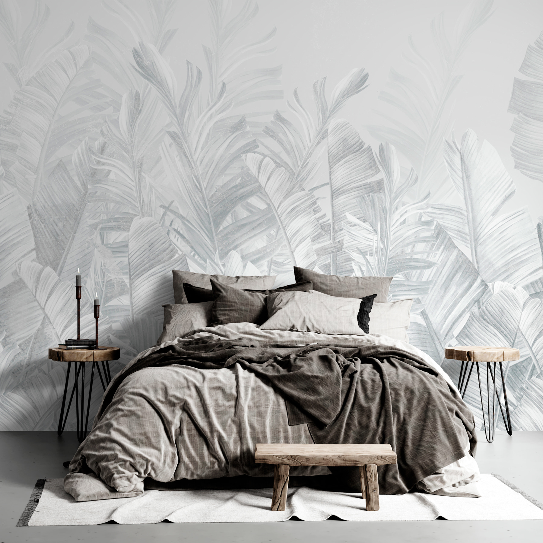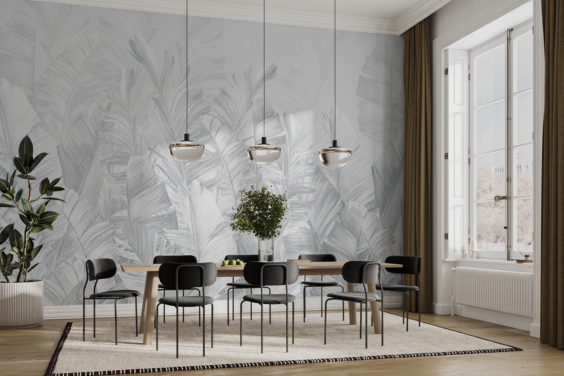 Představte si to – zeď, která je víc než jen zeď. Nástěnná malba “Skupina bílých listů” je jako vstoupit do sluncem zalité džungle, ale bez komárů. Má jemnou atmosféru šedé škály, takže je dostatečně univerzální na to, aby vklouzla do jakékoli místnosti – považujte ji za svého dekorativního chameleona. Každý bílý list působí téměř jako živý a vyvolává představu bezstarostných tropických eskapád. Na jeho jemné kráse je něco zvláštně uklidňujícího. Vsadím se, že někdo, kdo na něj zírá při popíjení ranní kávy, může mít pocit, že začíná svůj den v klidné svatyni. Je ideální pro snílky, kteří potřebují tropický únik, aniž by museli opustit domov – přidejte ho do relaxačního zákoutí nebo jím nečekaně ozvláštněte svůj elegantní městský prostor. Tato nástěnná malba není jen uměním, je to atmosféra. Navíc je bezúdržbová – není třeba ji zalévat!