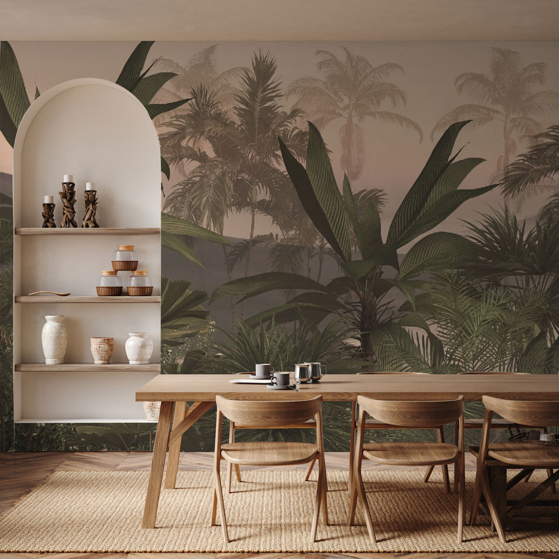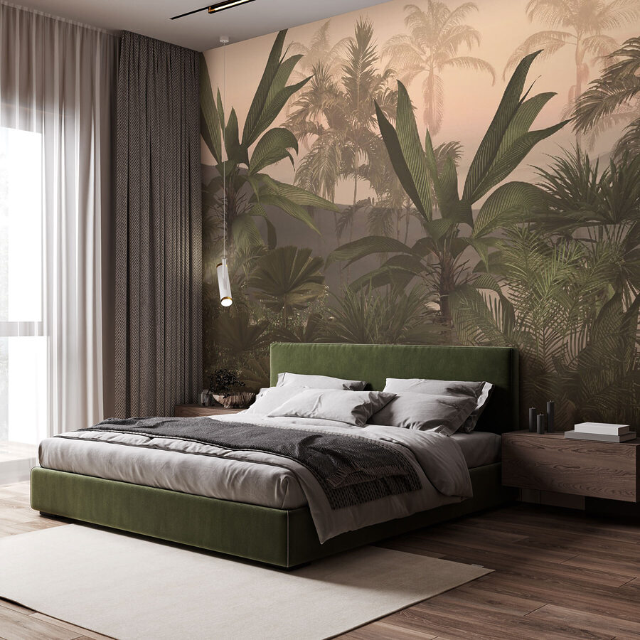 Měkké, mlhavé pozadí smíchané s živými zelenými listy dodá každému prostoru pocit života a svěžesti. Ať už je to váš obývací pokoj, ložnice, nebo dokonce kancelář, budete se díky ní cítit jako na neustálém útěku. A co je na tom nejlepší? Žádní brouci! Jen nekonečný klid a dotek exotického kouzla přímo na vašich stěnách.