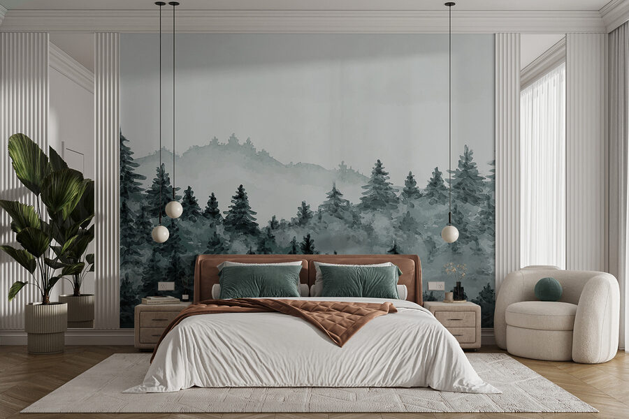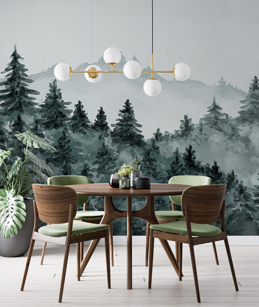 Představte si, že vejdete do obývacího pokoje a najednou BUM!- stojíte v klidném, mlhavém lese. Tato nástěnná malba “Mlžný les se stále zelenými stromy” jako by přenesla klidnou lesní krajinu přímo na vaše stěny. Ideální pro chvíle, kdy chcete uniknout shonu, aniž byste museli opustit svůj útulný prostor. Má snovou, akvarelovou atmosféru, která je velmi uklidňující. Představte si svou ranní kávu s touto mlhavou scénou – je to jako mini ústup! Tato nástěnná malba je ideální pro jakýkoli prostor, který potřebuje dotek kouzla přírody, a její atmosféra je o klidu a pohodě.