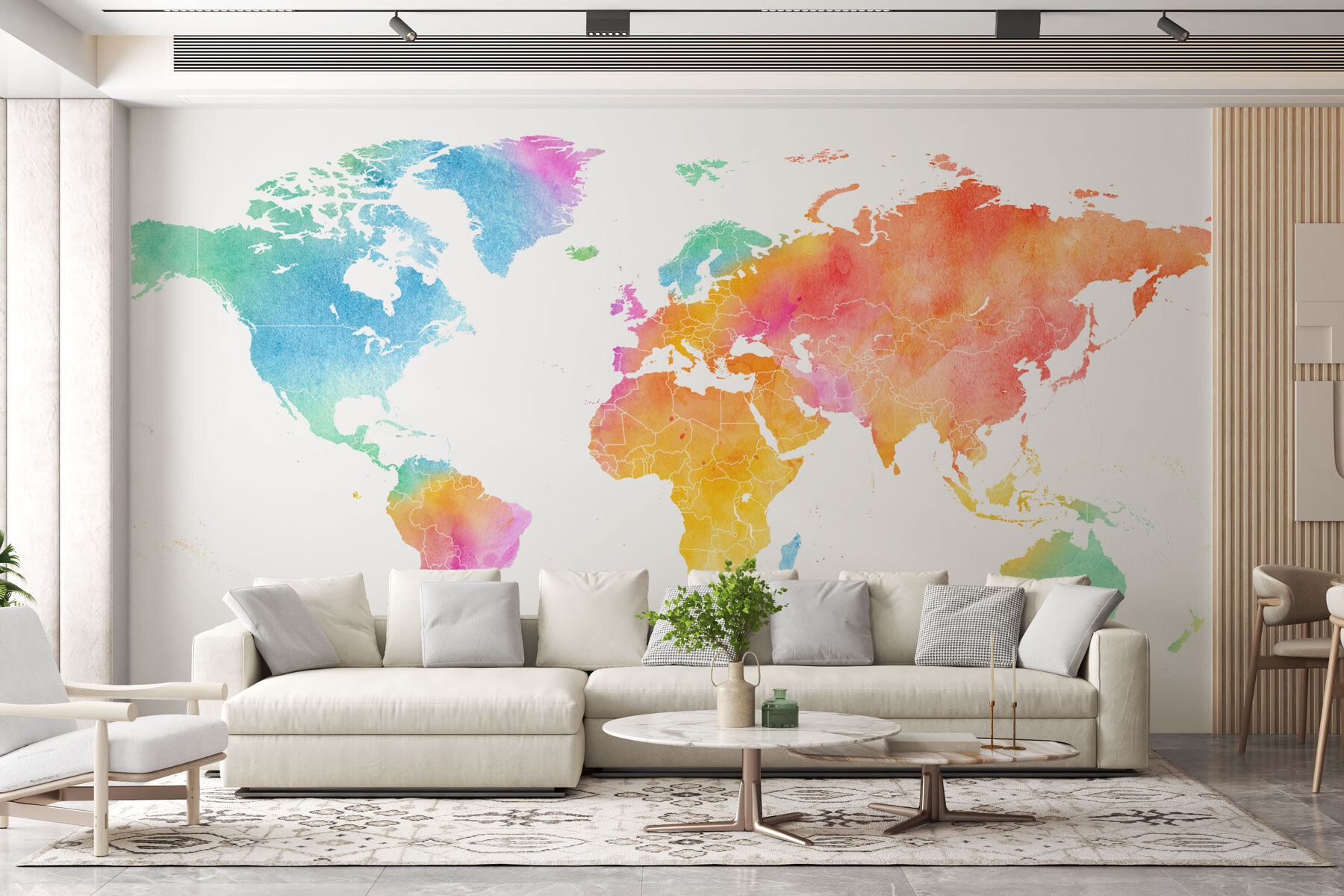 Podívejte se na tuto úžasnou nástěnnou malbu “Mapa světa”! Tato nástěnná malba je ideální do dětských pokojů a vnese do každého prostoru nádech kreativity a poznání. Ideální pro malé dobrodruhy, kteří sní o tom, že prozkoumají každý kout zeměkoule, nebo i pro ty, kteří mají rádi akvarelové kouzlo ve svém interiéru. Jasné barvy se krásně prolínají a vytvářejí poutavý ústřední bod, který je nejen vzdělávací, ale také velmi zábavný. Představte si, jaké příběhy před spaním a hodiny zeměpisu bude tato mapa inspirovat! Takový nádherný způsob, jak podnítit lásku k cestování a zvědavost o světě. Tato nástěnná malba slibuje, že promění obyčejnou zeď v živou cestu napříč kontinenty. Je to jako mít svět na dosah ruky – doslova!