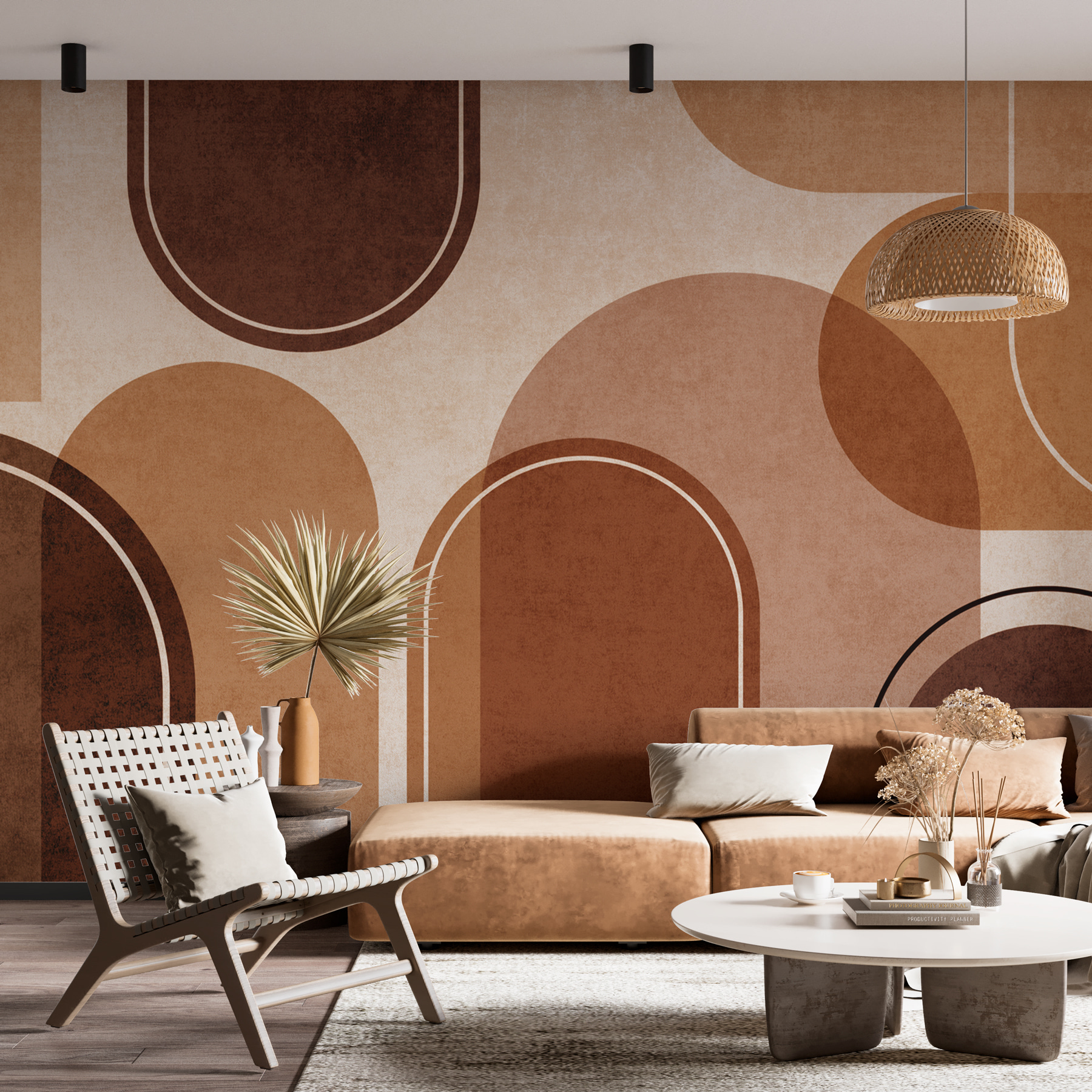 Představte si útulné odpoledne zalité teplým světlem a obklopené zemitými odstíny této úžasné nástěnné malby. “Nástěnná fototapeta Geometrické tvary v zemitých tónech” není jen střípkem barev – je jako jemné objetí pro váš prostor, ve kterém se mísí abstraktní geometrické tvary, které působí jako domov. Skvěle se hodí pro ty, kteří zbožňují trochu moderního vkusu, ale stále touží po uzemněné, přírodní atmosféře. Skvěle se hodí do každé místnosti, kde byste rádi získali špetku kreativity, a vybízí ke klidu i zvědavosti. Představte si ji ve svém obývacím pokoji, kde bude každý okamžik o něco bohatší. Směs tvarů a tónů jemně mísí sofistikovanost s uvolněným šarmem. Začíná konverzaci, navozuje náladu a je malým uměleckým dílem přímo na vaší stěně. Nečekaně půvabný, trochu jako když najdete peníze v kapse kabátu, který jste už léta nenosili.