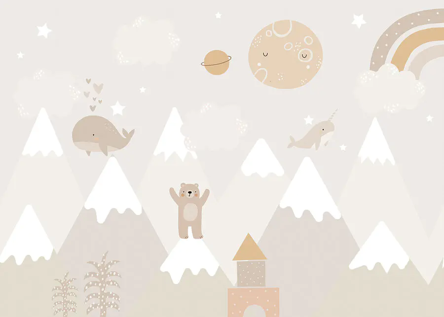 Tato nádherná nástěnná malba “Kreslená velryba s hvězdami” je jako vstup do rozmarného snu! Je ideální do dětského pokoje, dětského pokoje nebo jakéhokoli hravého prostoru a přináší útulnou, kouzelnou atmosféru, která je uklidňující i zábavná. Představte si, jak vaše ratolesti usínají pod usměvavým měsícem a mezi hvězdami se vznášejí přátelské velryby a narvalové – čisté kouzlo pohádek na dobrou noc! Jemné pastelové tóny a milé postavičky vytvářejí klidnou a příjemnou atmosféru, která je úžasnou kulisou pro mazlení nebo hraní. Přijměte kouzlo a nechte tuto okouzlující scénu rozproudit radost a tvořivost ve vašem prostoru!