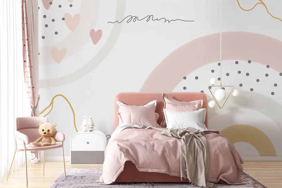 Představte si líná nedělní rána, kdy slunce nakukuje přes záclony a osvětluje malá srdíčka a tečky rozeseté po nástěnné malbě jako jemné konfety. Tahle není jen stěna – je to kulisa pro dobrodružství, pohádky před spaním a snění. A co je nejlepší, hodí se do dětských pokojů i pokojů starších dětí a dodává jim ten správný šmrnc.
