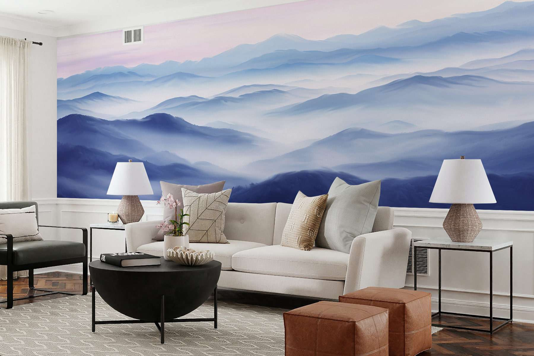 Představte si, že se místnost promění v klidné útočiště díky této úžasné nástěnné malbě “Krajina hor s mlhou”. Je to jako pohled do nekonečného obzoru, kde se měkké, mlhavé vrcholky prostě rozplývají jeden v druhém. Kdyby měl klid umělecké dílo, bylo by to tohle. Ideální pro dny, kdy chcete jen cítit klid hor, aniž byste museli skutečně chodit po horách. Nebylo by snové jen tak popíjet ranní kávu a ztrácet se v těchto vrstvách modři? A taky se s ním dá dobře konverzovat. Vaši přátelé se budou ptát: “Kde jsi to vzala?”. A vy se budete jen usmívat.