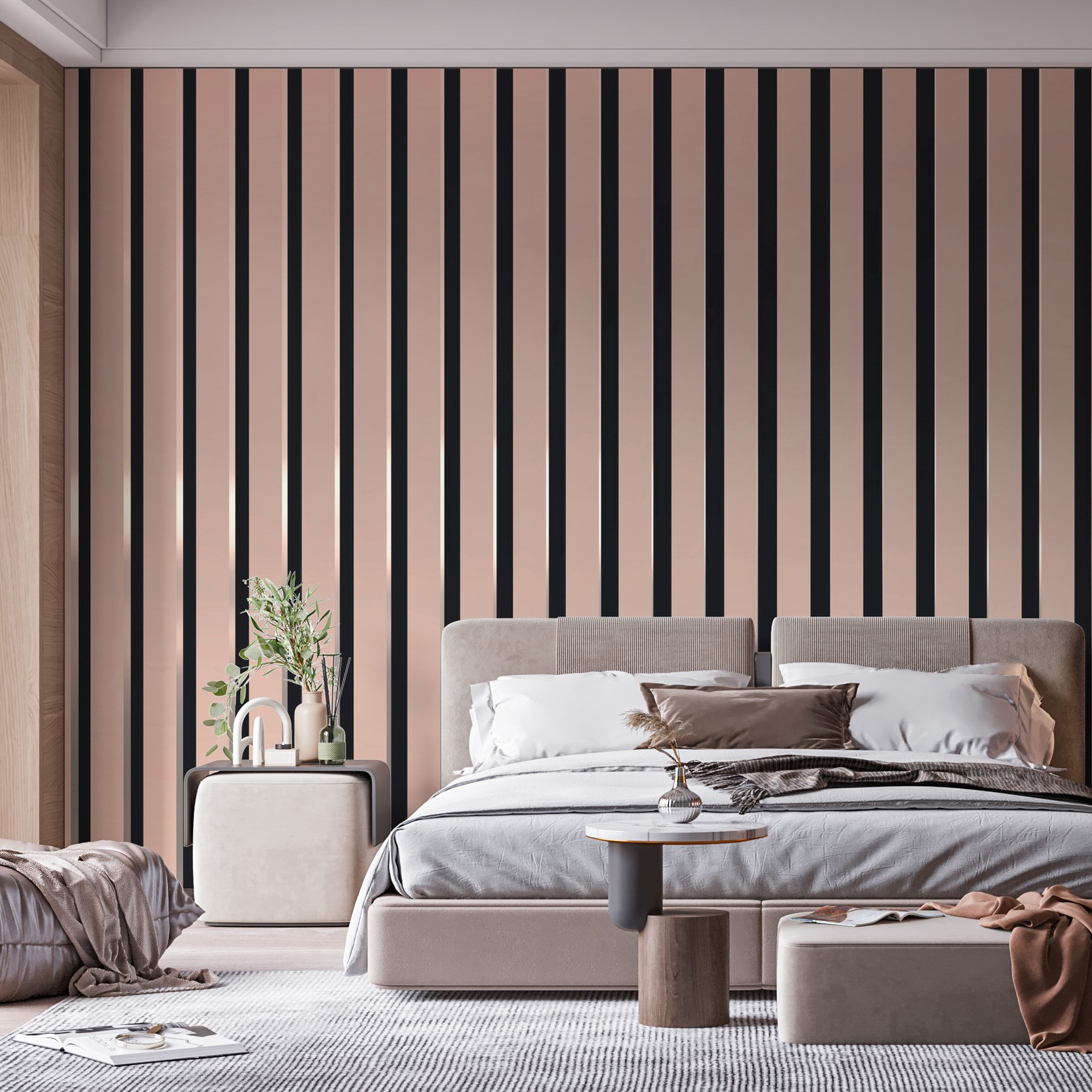 Představte si, že díky této vertikální pruhované fototapetě vstoupíte do prostoru, který působí lehce a bezstarostně. Představte si tyto elegantní linie táhnoucí se od podlahy ke stropu, které vytvářejí plynulý tok vybízející k relaxaci. Je to jako jemné objetí pro vaše stěny – příjemné a zároveň elegantní. Tento design je ideální pro útulný čtecí koutek nebo elegantní obývací pokoj a bez námahy dodává zájem, aniž by zahltil. Přátelé se projdou, rozhlédnou a řeknou: “Páni, tohle místo má styl!”. Proměňte svůj prostor s nádechem moderního šarmu a nechte tyto pruhy působit jejich kouzlo!